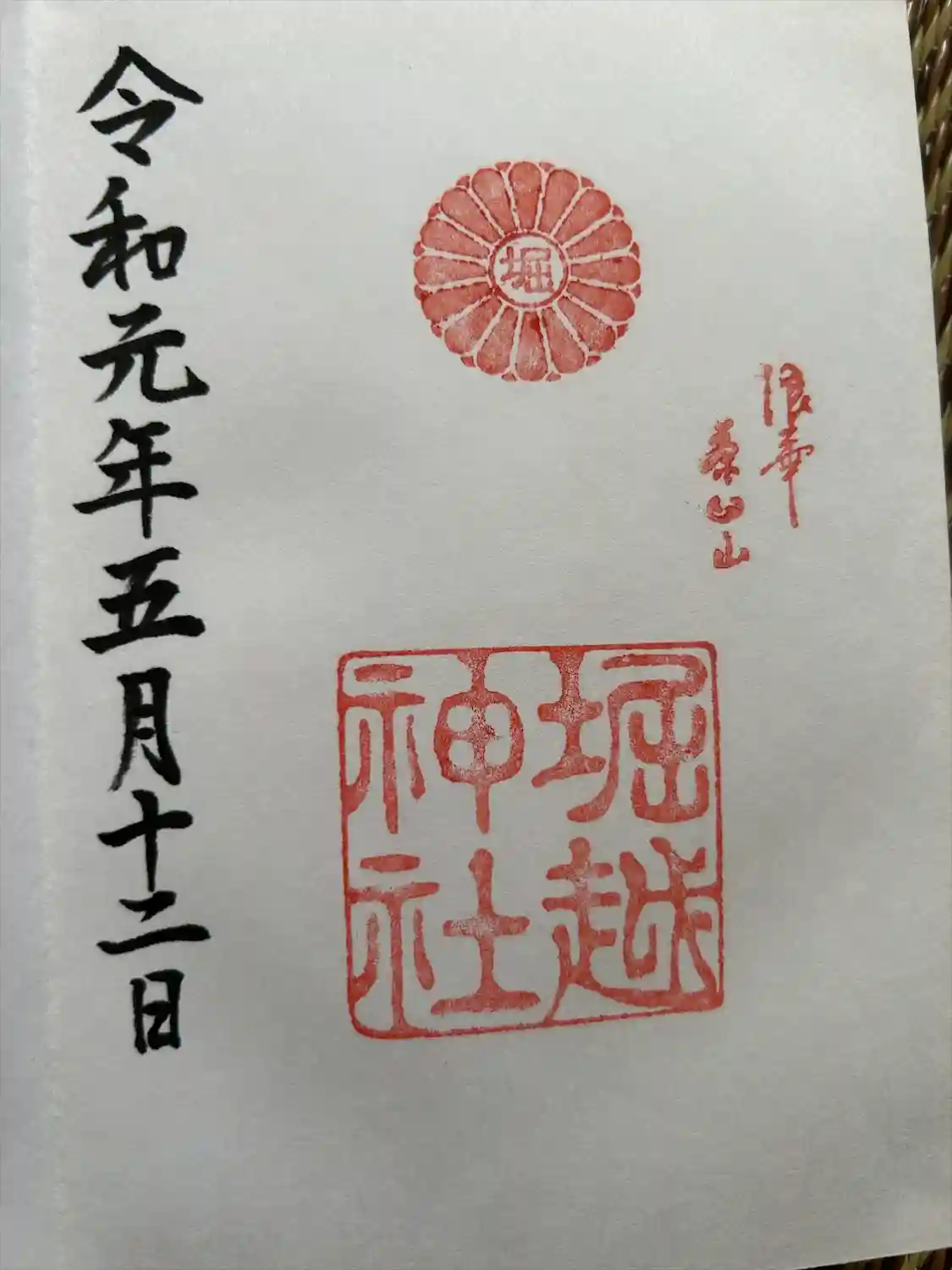(右)堀越神社の御朱印