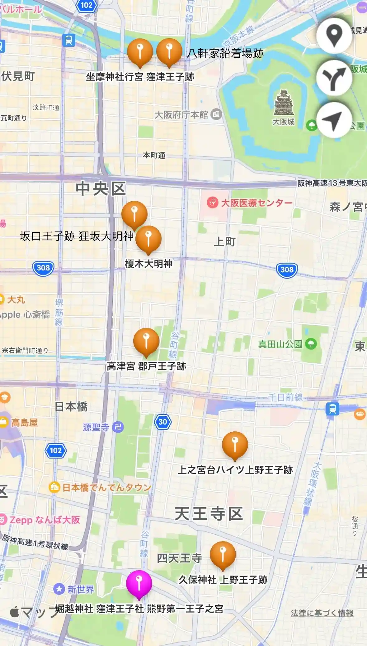 四天王寺→庚申堂→堀越神社→一心寺→…