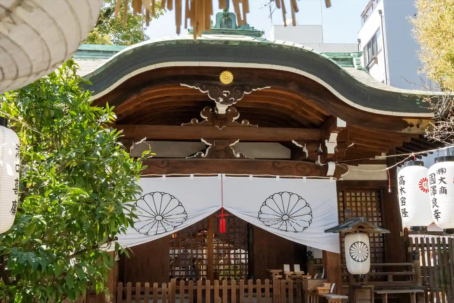 社紋には菊に堀の字の紋を使っています。