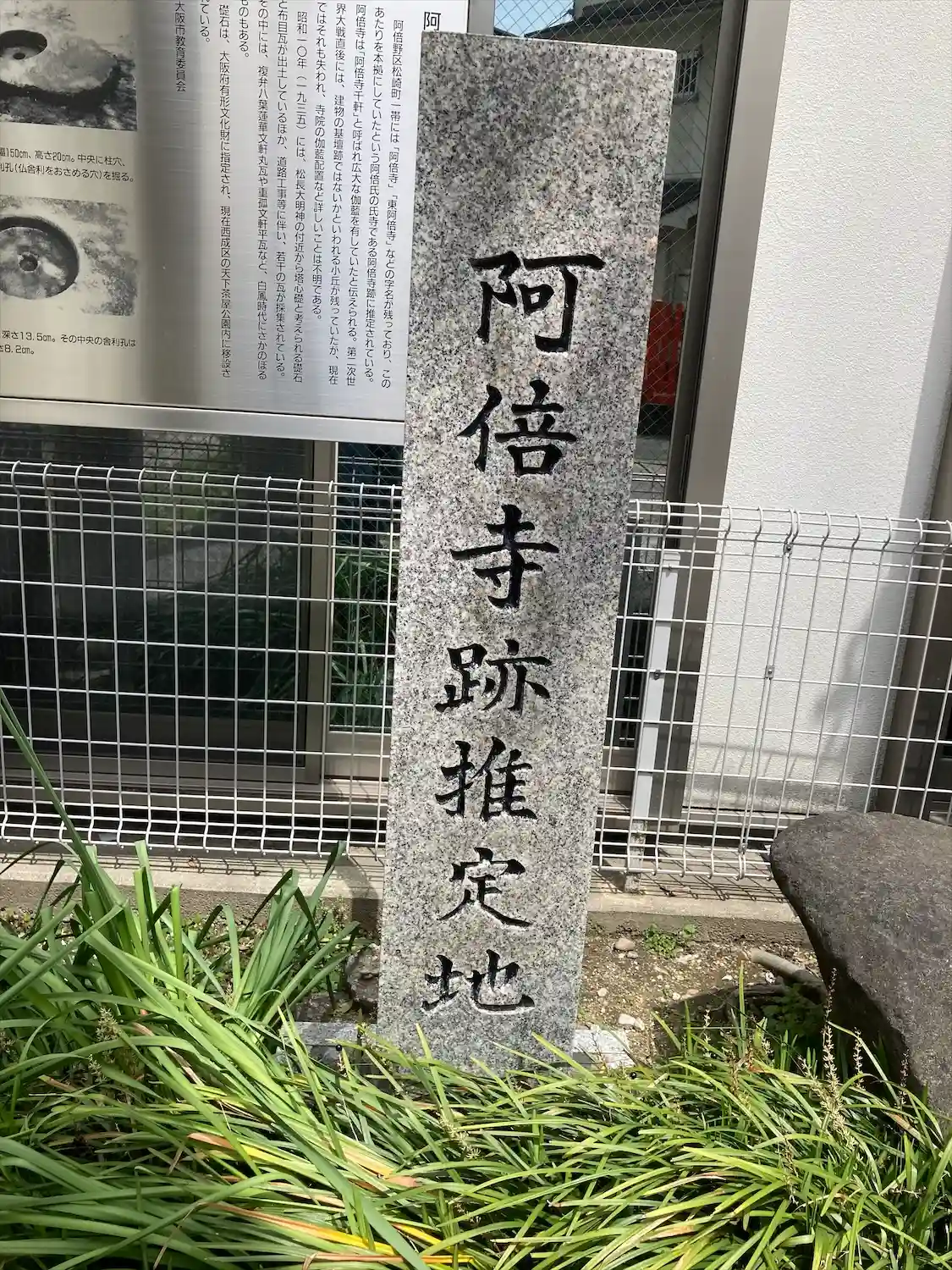 鳥居入ってすぐ左手に「阿倍寺推定地」の石柱と教育委員会の由来が書いてある。