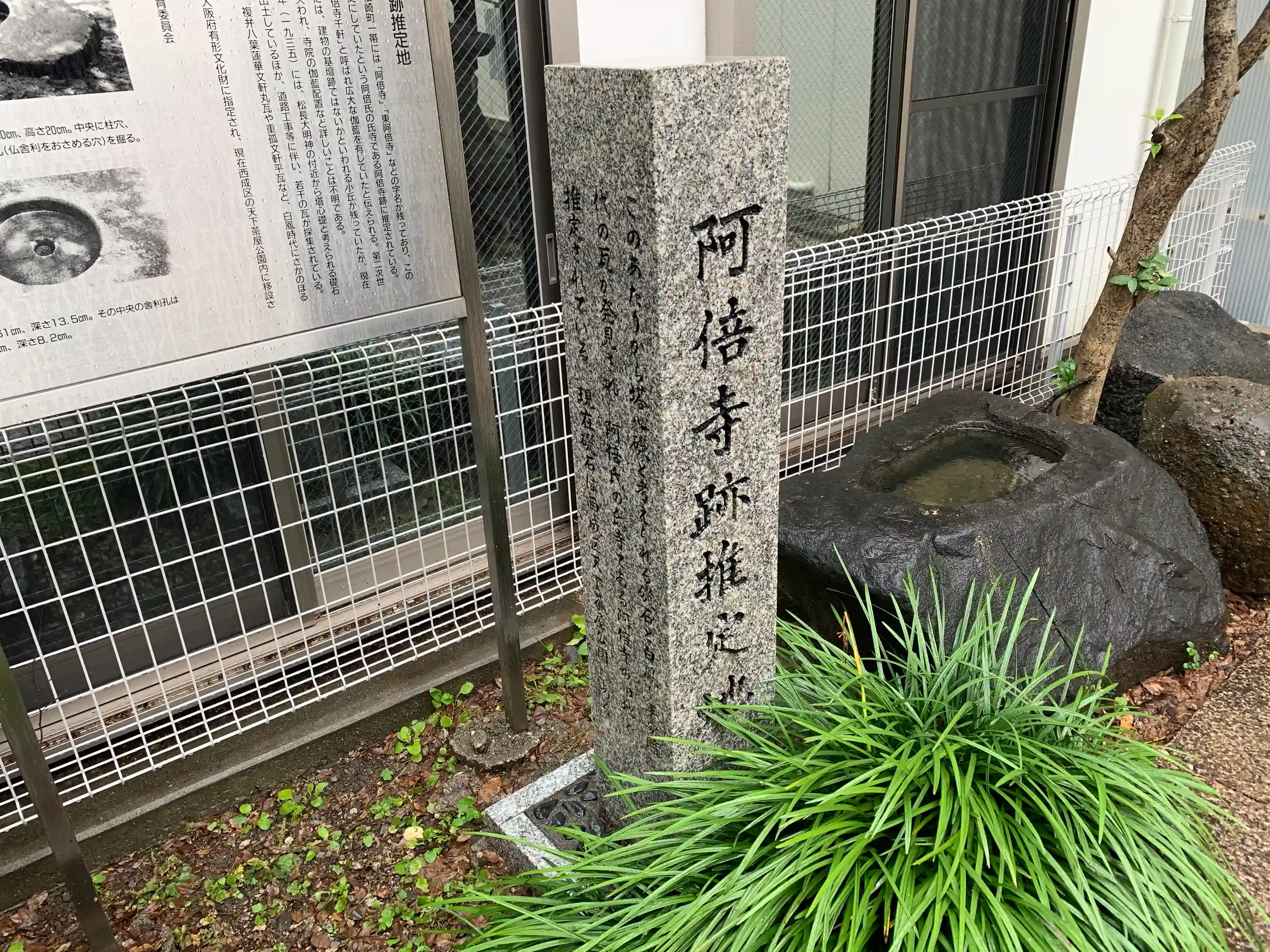 鳥居入ってすぐ左手に「阿倍寺推定地」の石柱と教育委員会の由来が書いてある。