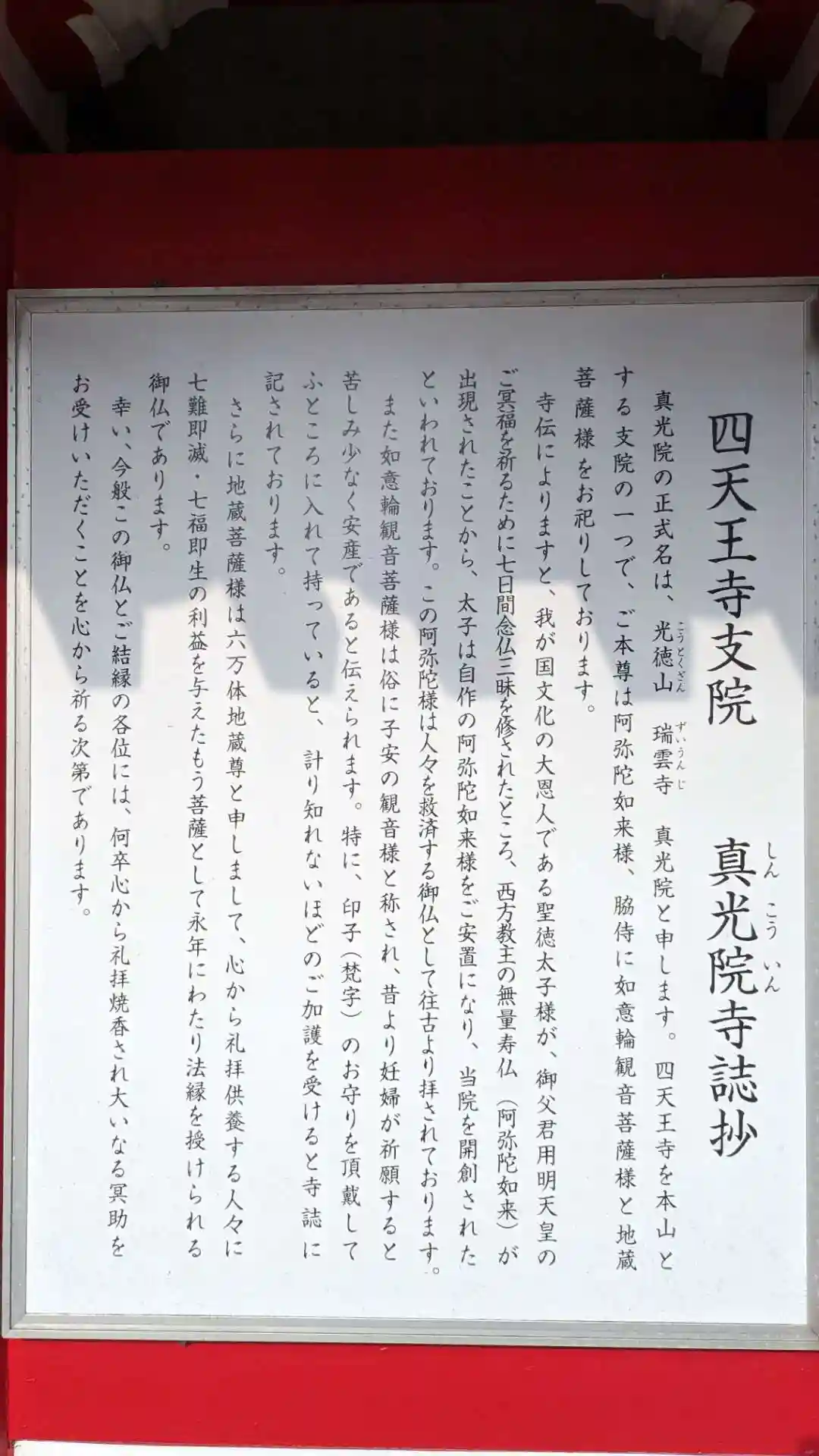 大阪市天王寺区夕陽丘町にある四天王寺を本山とする支院。摂津国八十八ヶ所霊場第二十四番札所。地下鉄駅もある谷町筋にありかなり人通りの多い場所にあります。