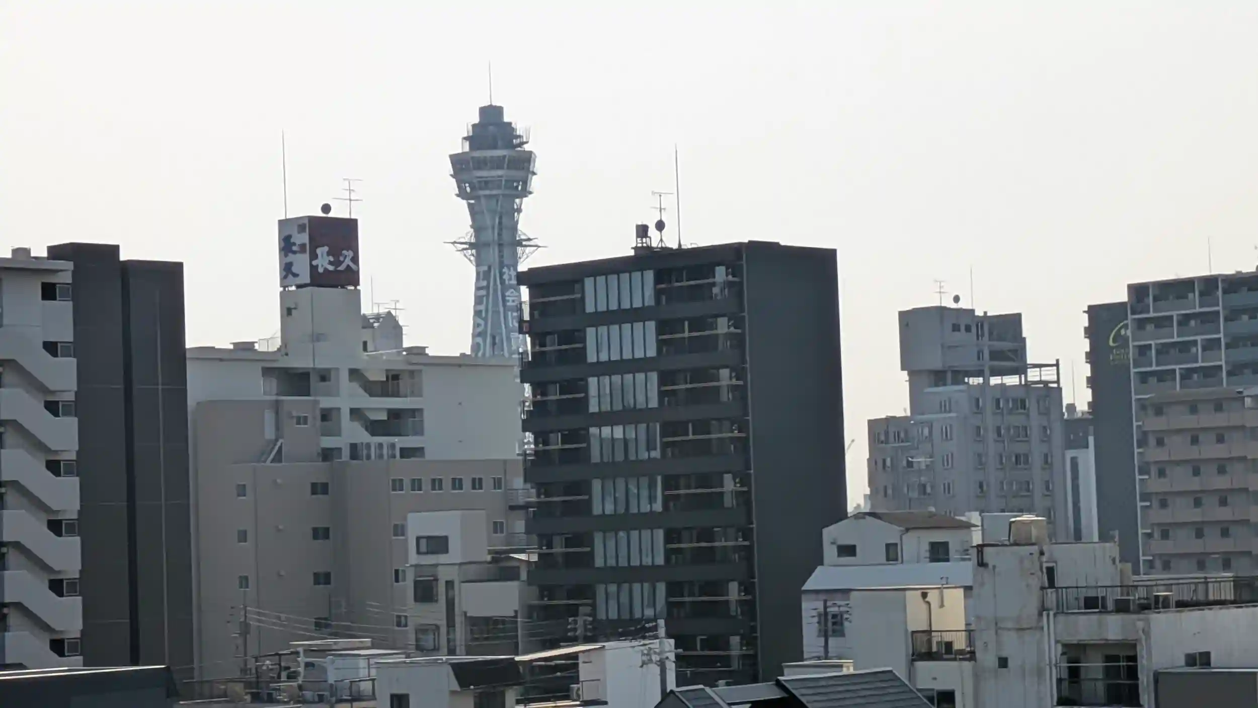 釣鐘と遠くに通天閣