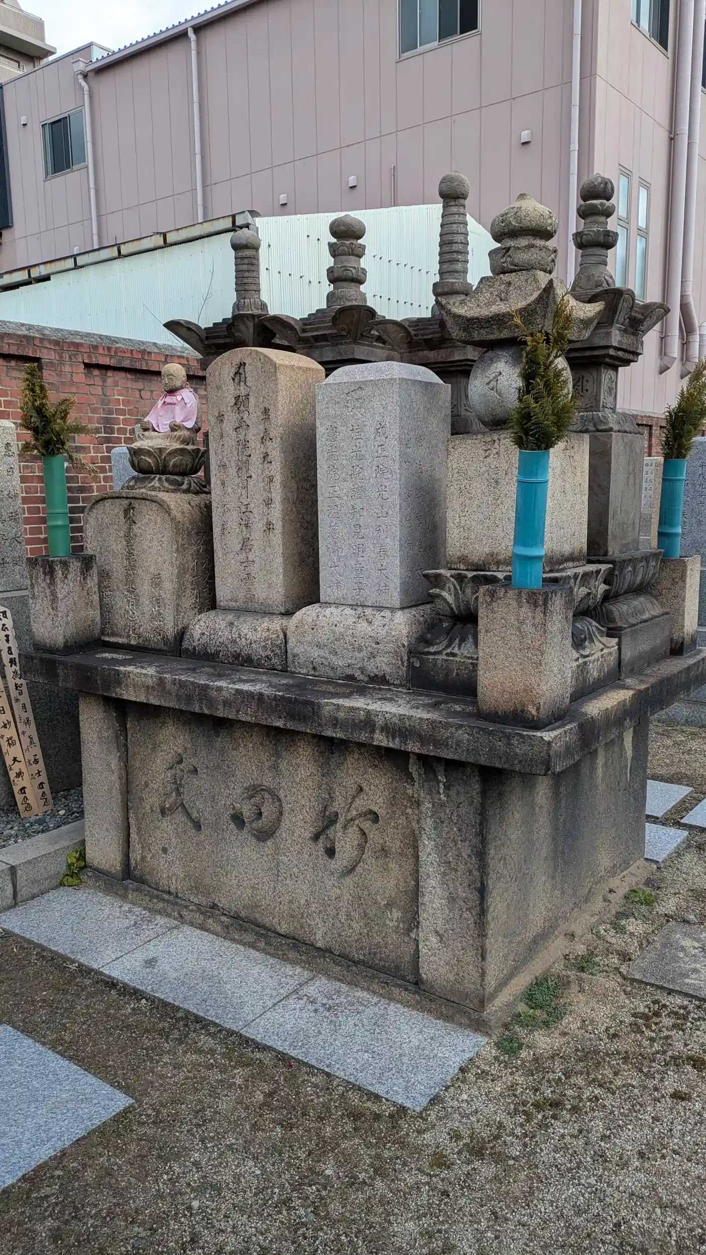 月江寺すぐ近くの青蓮寺。京都にいると「しょうれんじ」と読んでしまいますがこちらは「せいれんじ」が正解のよう。高野山真言宗の寺院で山号は吉祥山。おおさか十三佛霊場・大日如来(金剛界)。摂津国八十八ヶ所第23番。浄瑠璃作家の竹田出雲墓所とのことで名前は存じ上げませんでしたが「仮名手本忠臣蔵」「義経千本桜」と私でも聞き覚えのあるタイトルが並んでおりました😅御朱印を拝受に伺うと「十三佛の霊場御朱印は500円に値上がりしたので摂津国なら300円やし摂津にしとく?」とのことでしたので摂津国霊場御朱印をいただきました😊
