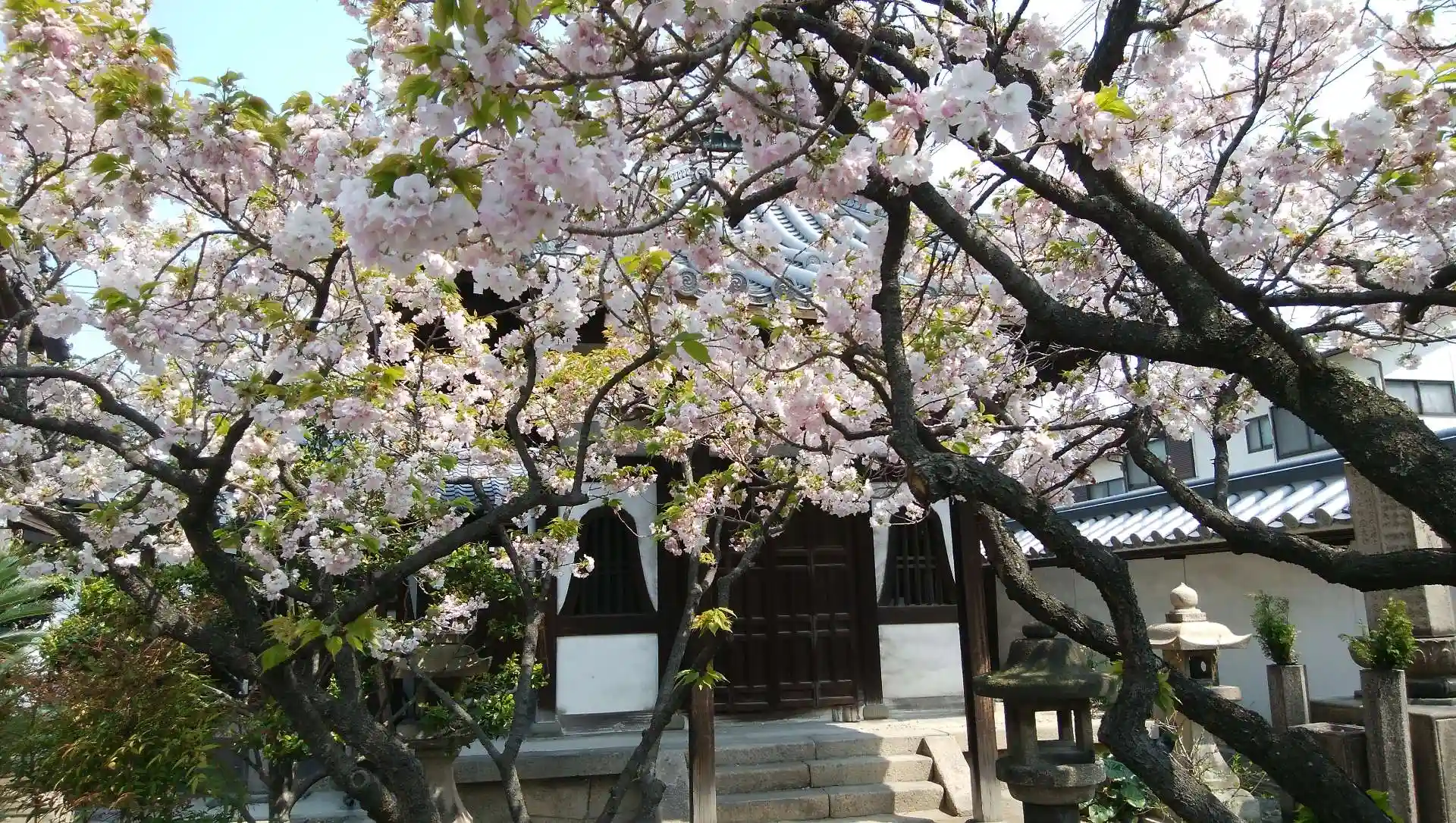 大阪新四十八願所阿弥陀第31番札所の浄土宗寺院。境内の庭には小さな二重塔など広く手入れされています。