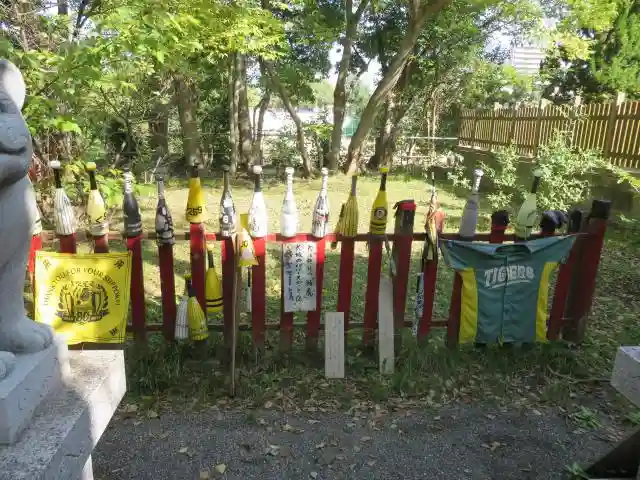 境内奥にはタイガースファンの聖地があるようです。そこの狛虎はHPによると、明治の神仏分離で「吽形」が滋賀に移され、残った「阿形」も大阪大空襲で焼夷弾を受け、耳がとれ歯も欠けてしまったとの事。