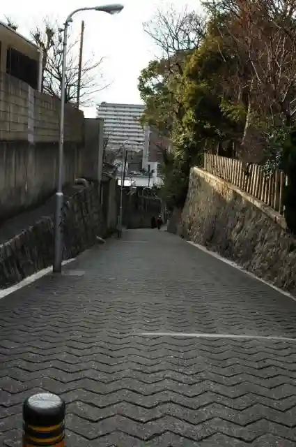 神社の横に伸びる大阪7坂の一つ「愛染坂」