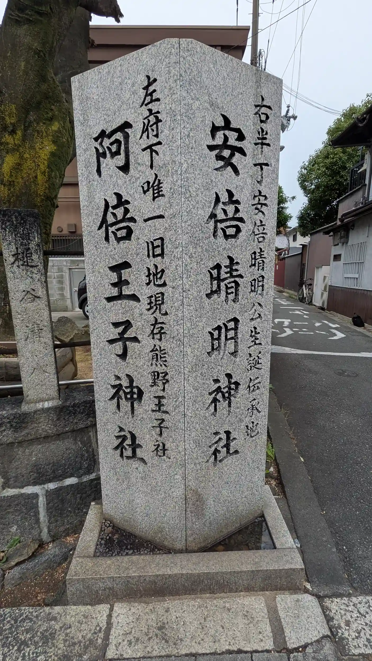 阿倍王子神社と安倍晴明神社の社号標