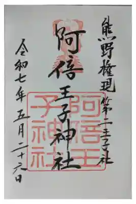 阿倍王子神社の花御朱印