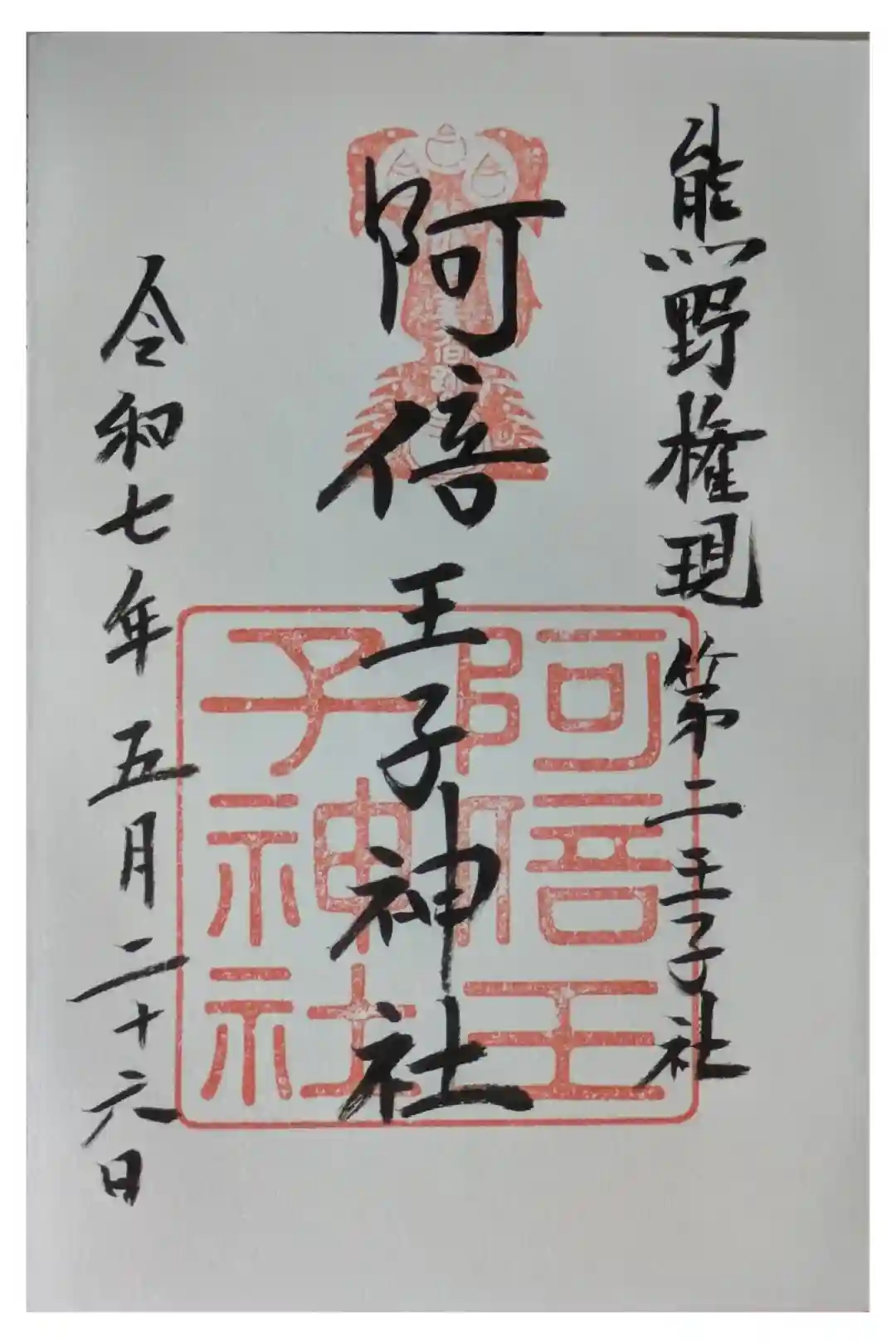 阿倍王子神社朱印【直書き】