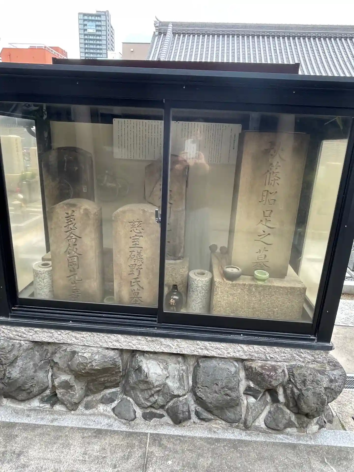 ガラスケースに墓石
