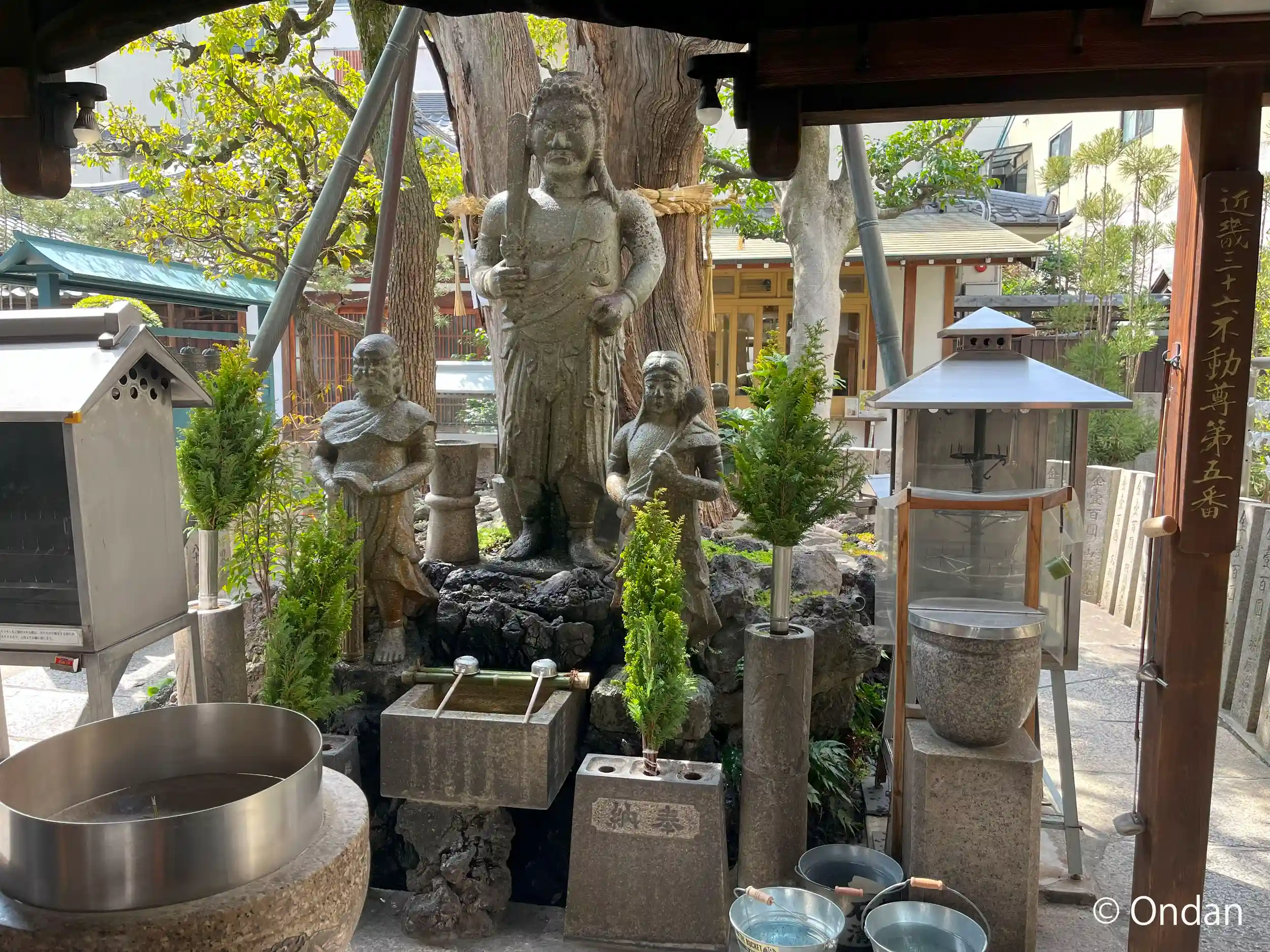 境内は狭いですが、参拝の方が途切れません。装飾の方に声をかける人が多かったので、地元の方が多いように思いました。北向不動と南向不動が樟を挟んで立ってらっしゃいます。