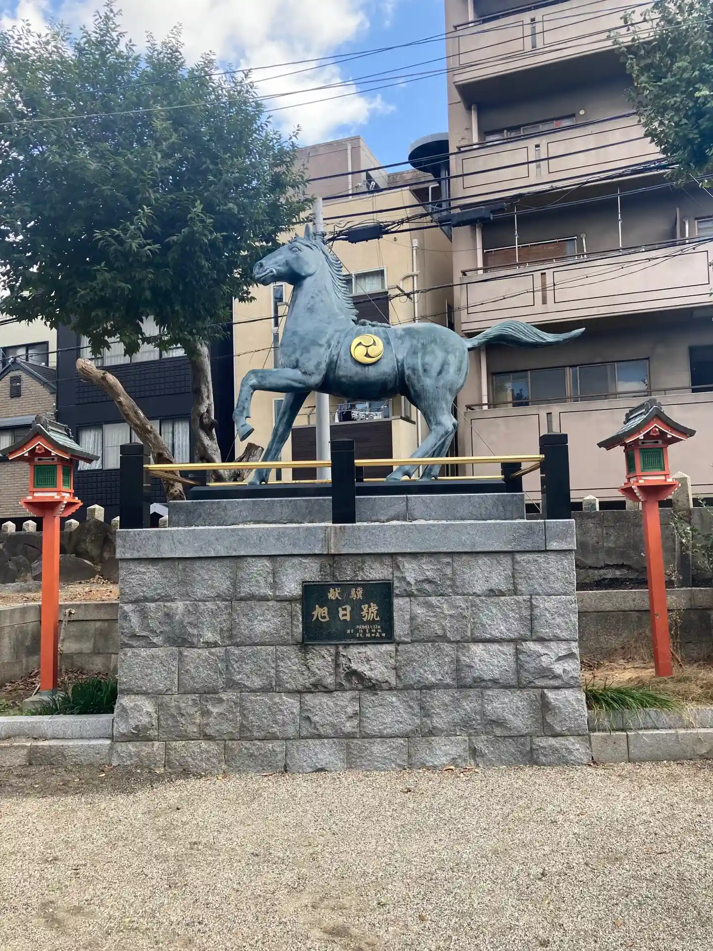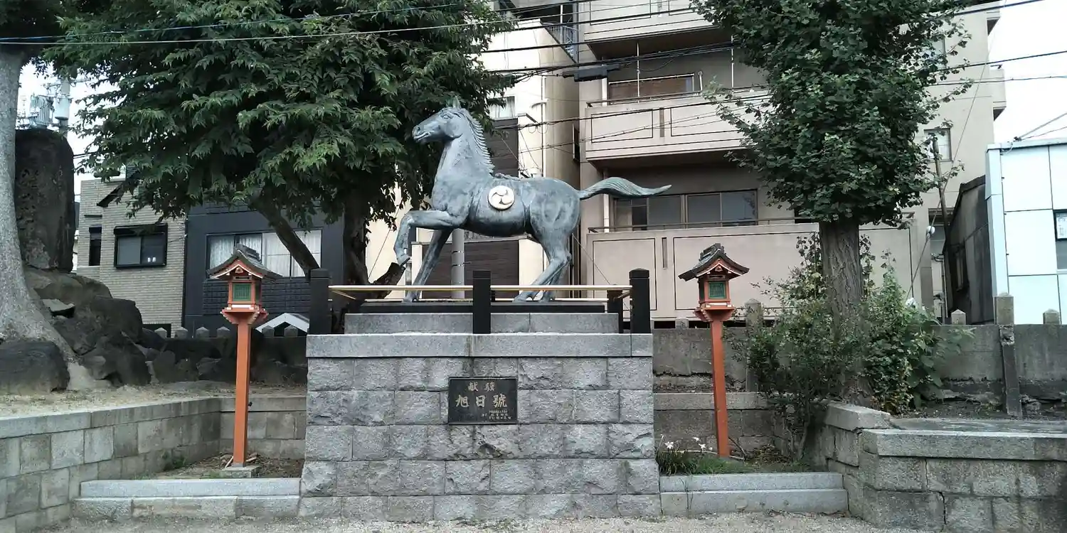 住宅街の中に突然立派な神馬と鳥居が出迎えてくれました。