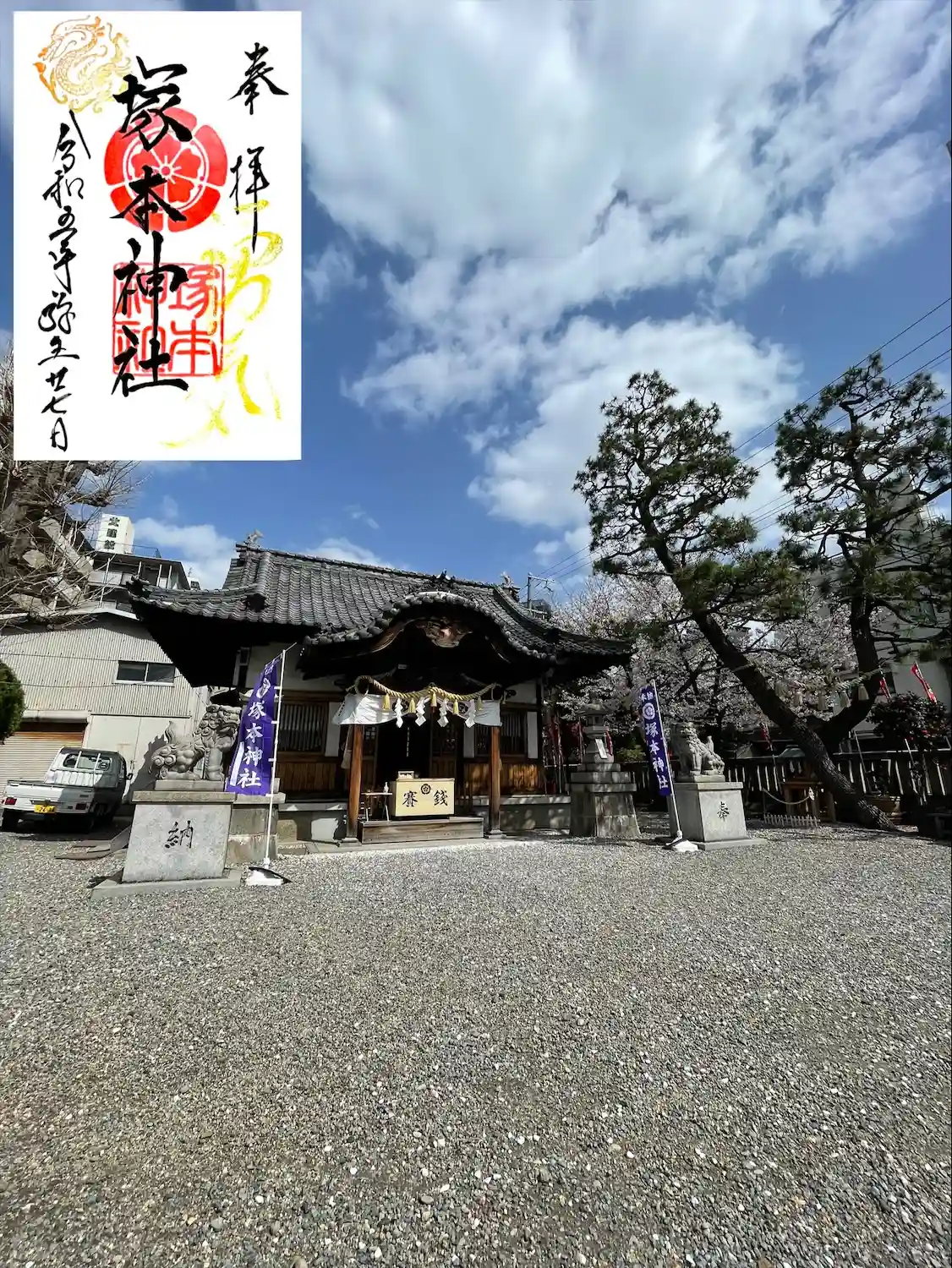 淀川通から1本入ったトコ。住宅街にある神社。境内Pは無いよーでお隣のコインPへ。最寄りの塚本駅から7分。
