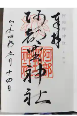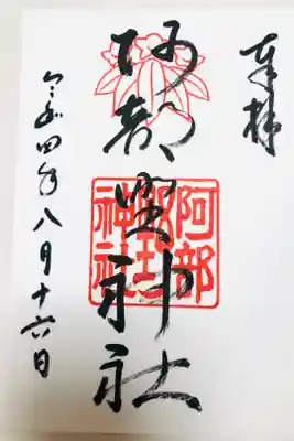 阿部野神社の8月の御朱印です。