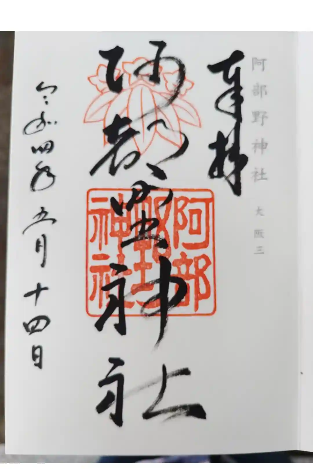 阿部野神社の6月限定御朱印です。