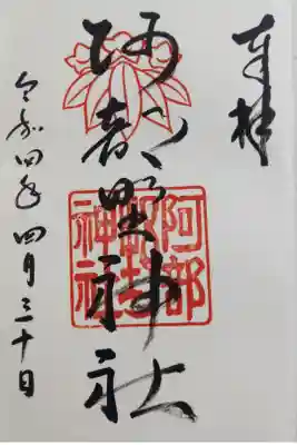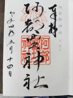 阿部野神社の10月の御朱印です。