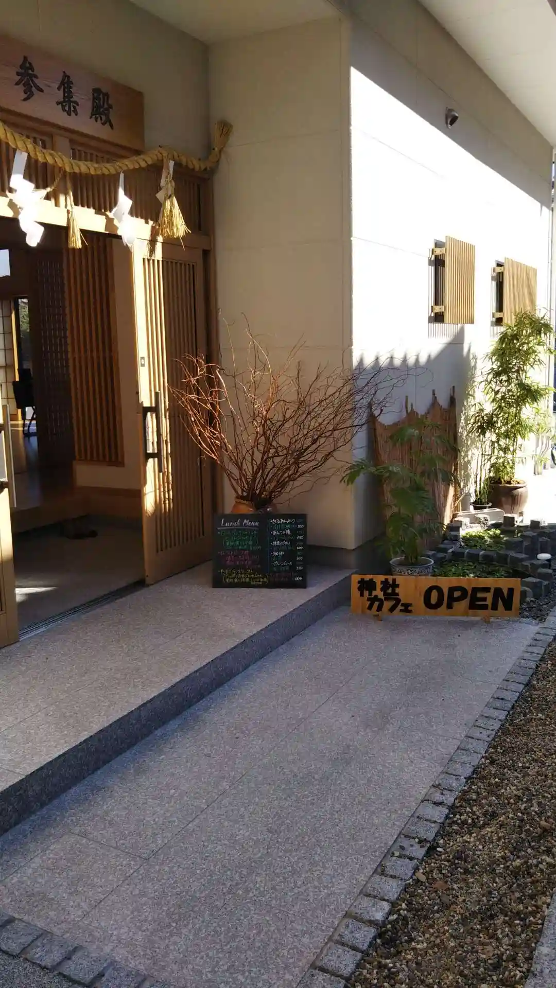 神社Cafeの看板あり