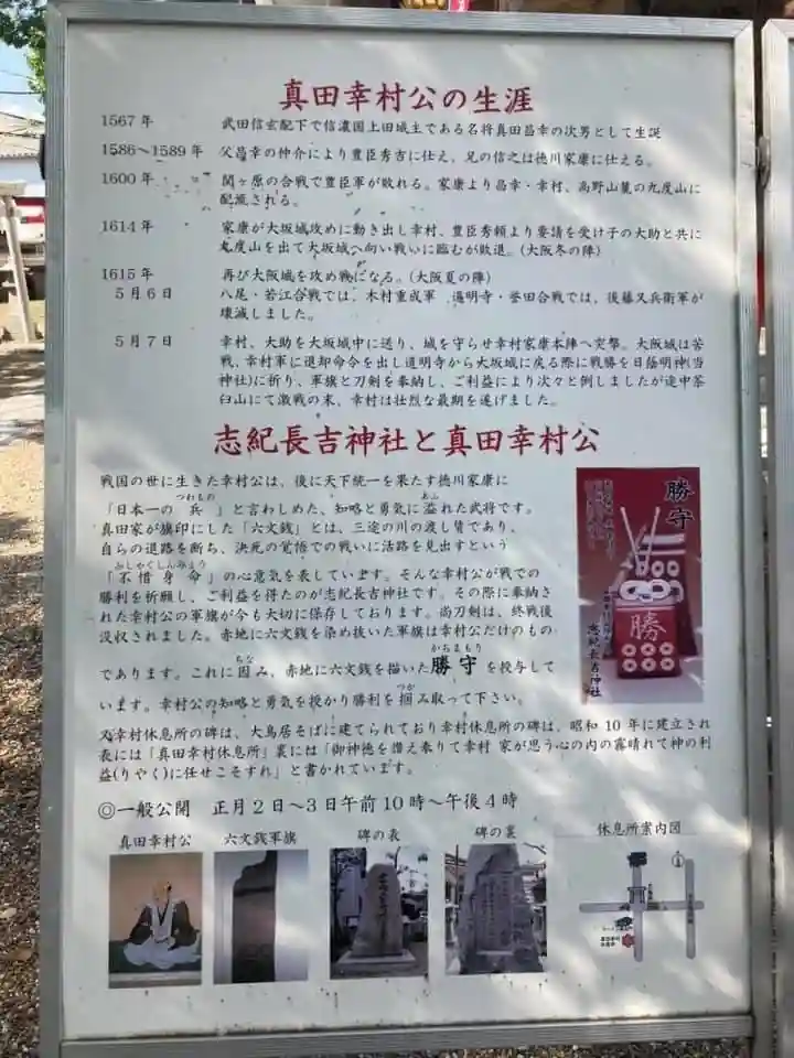 真田幸村(信繁)が戦勝祈願に参拝した神社で、六文銭の軍旗を奉納した幸村ゆかりの神社です。