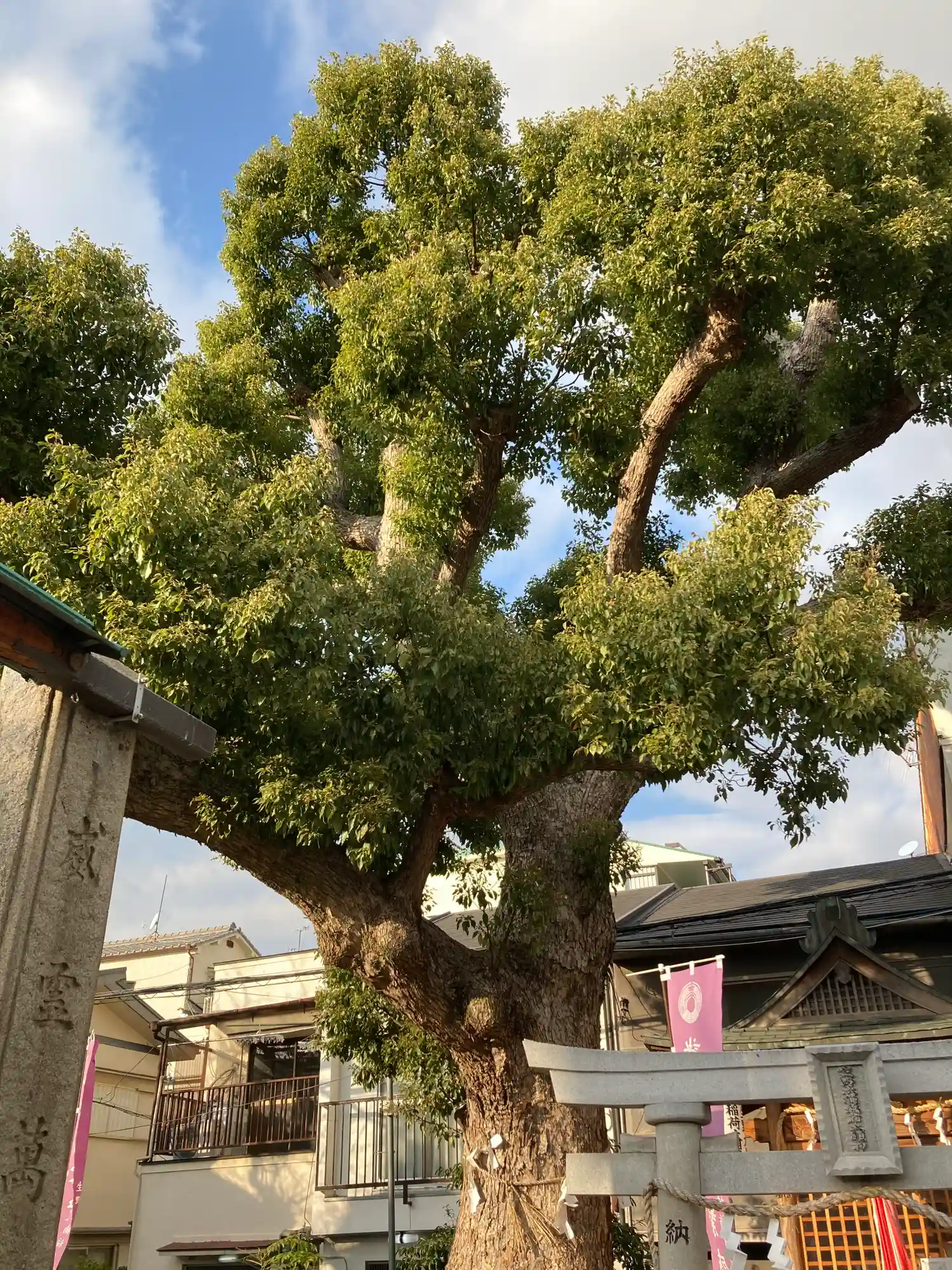 帰り道に生野の商店街に入り込んだところこちらの神社に巡り合いました。商店街の中に表参道の幕がありま…