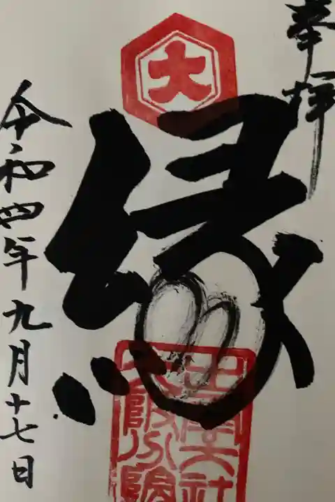 社務所のインターホンを鳴らし、御朱印を直書きで拝受。
