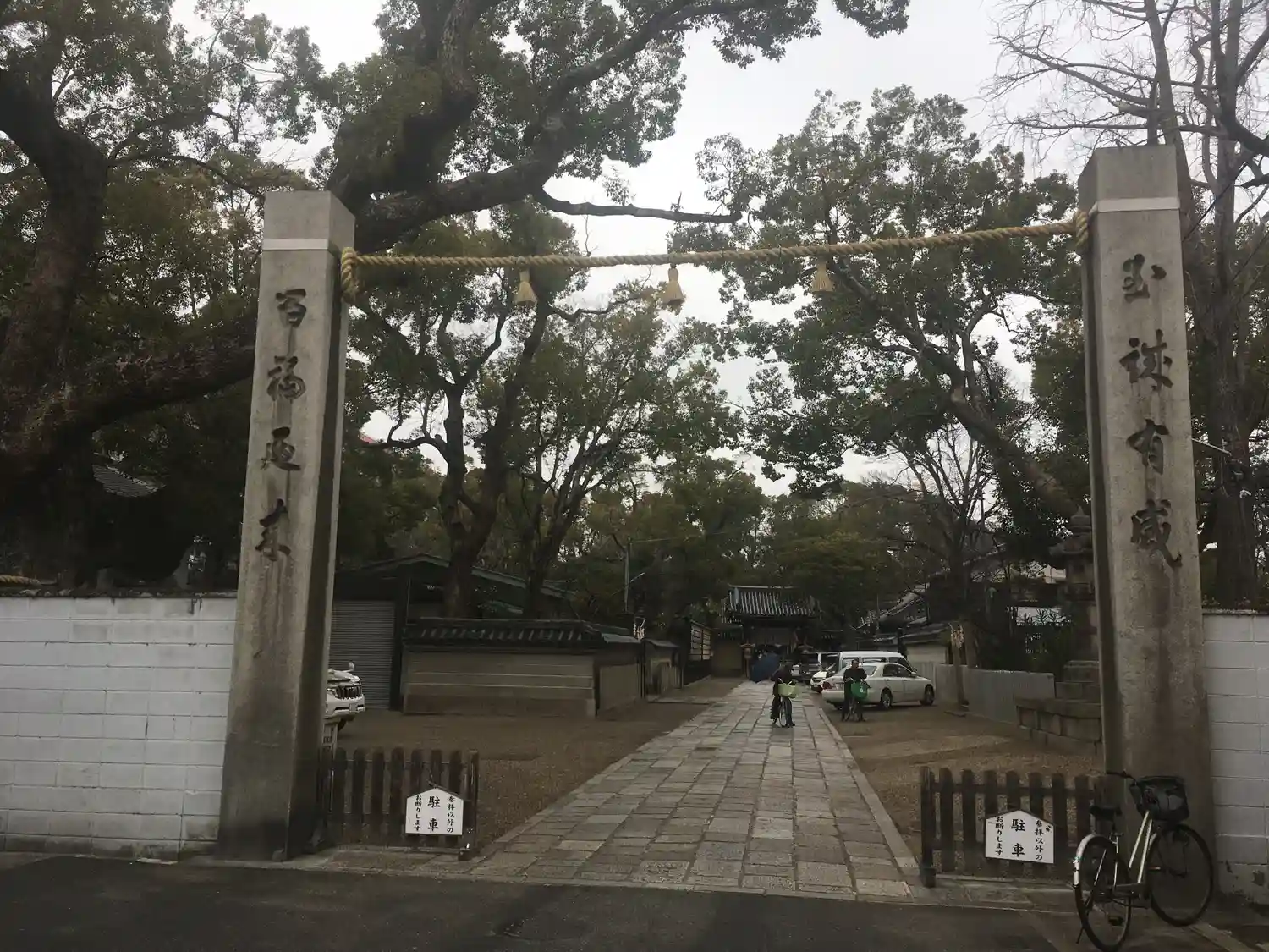 杭全神社は小学校に隣接しています。