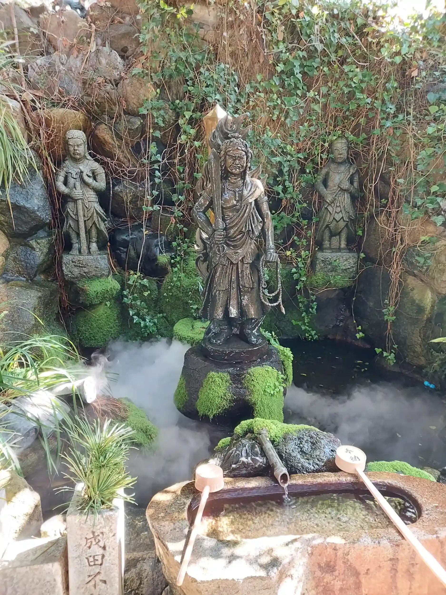 一願不動尊 池にミスト