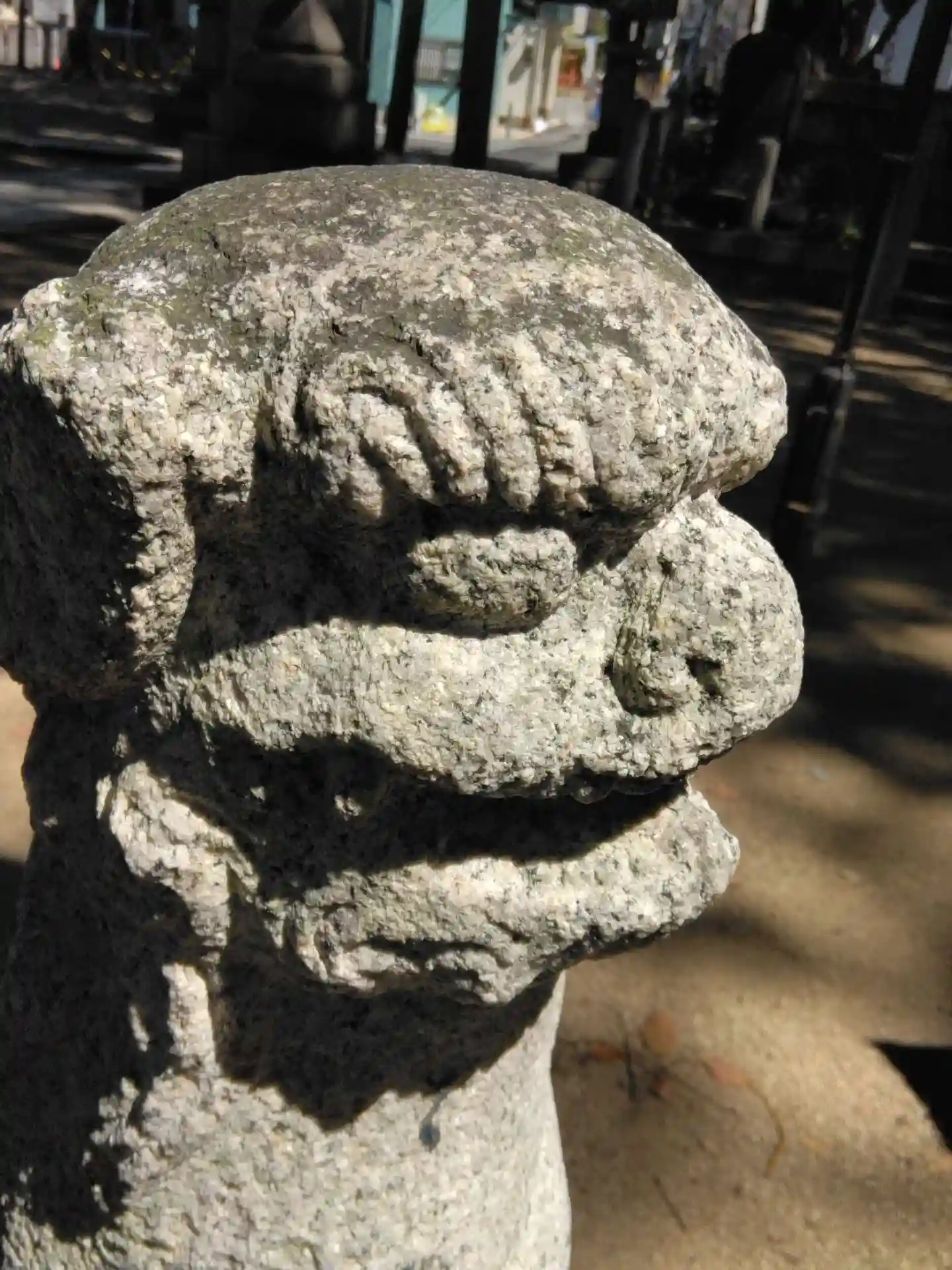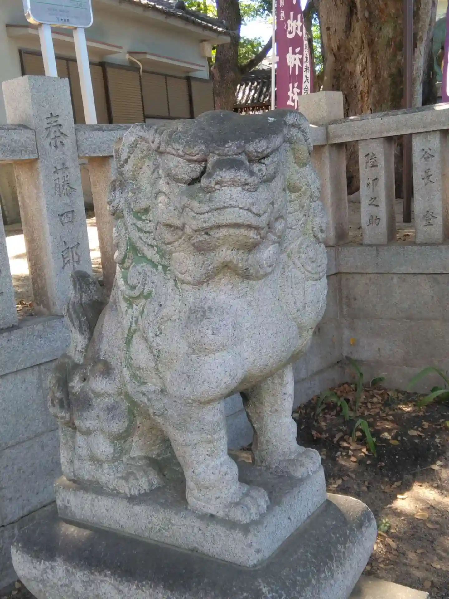 どちらかというと「浪速型」の狛犬さん。団子鼻とギョロ目が特徴です。