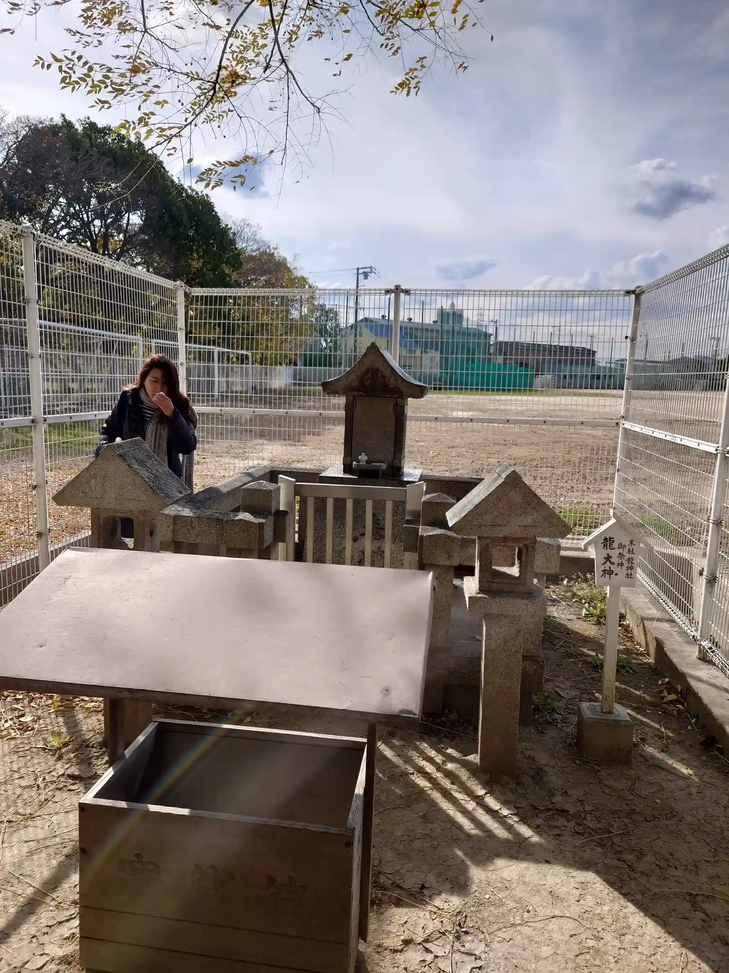 いつの間にか龍神社の御社が新しくなってました。金網の先は学校のグランドです。
