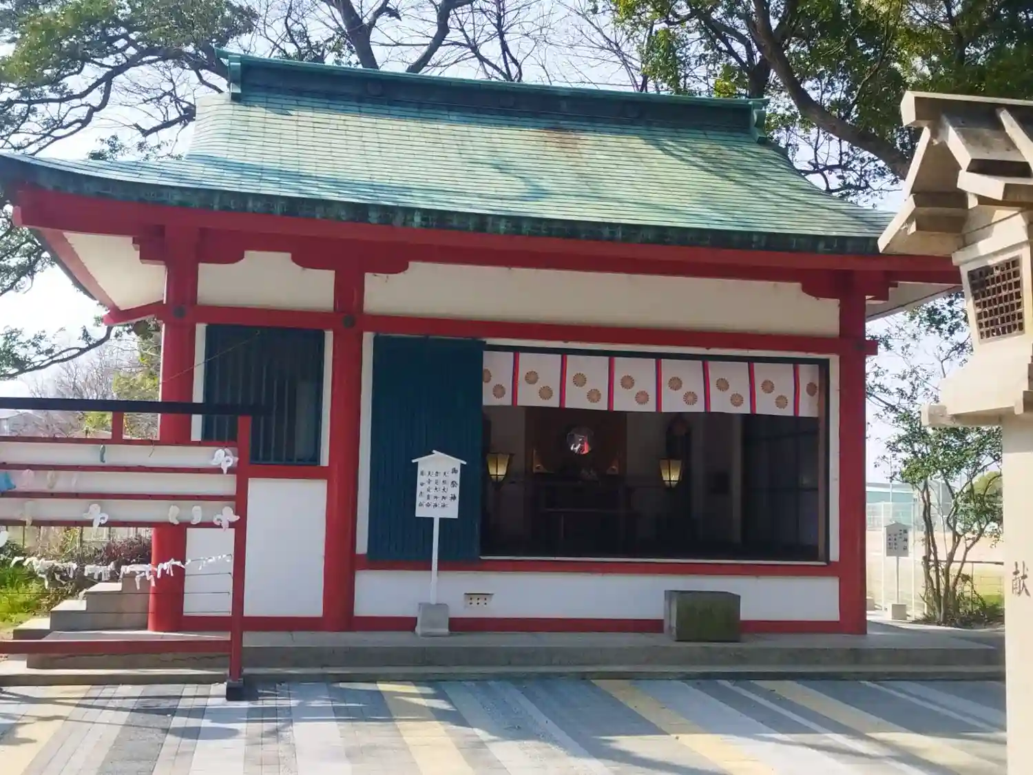 本殿前がタイル舗装されていました!