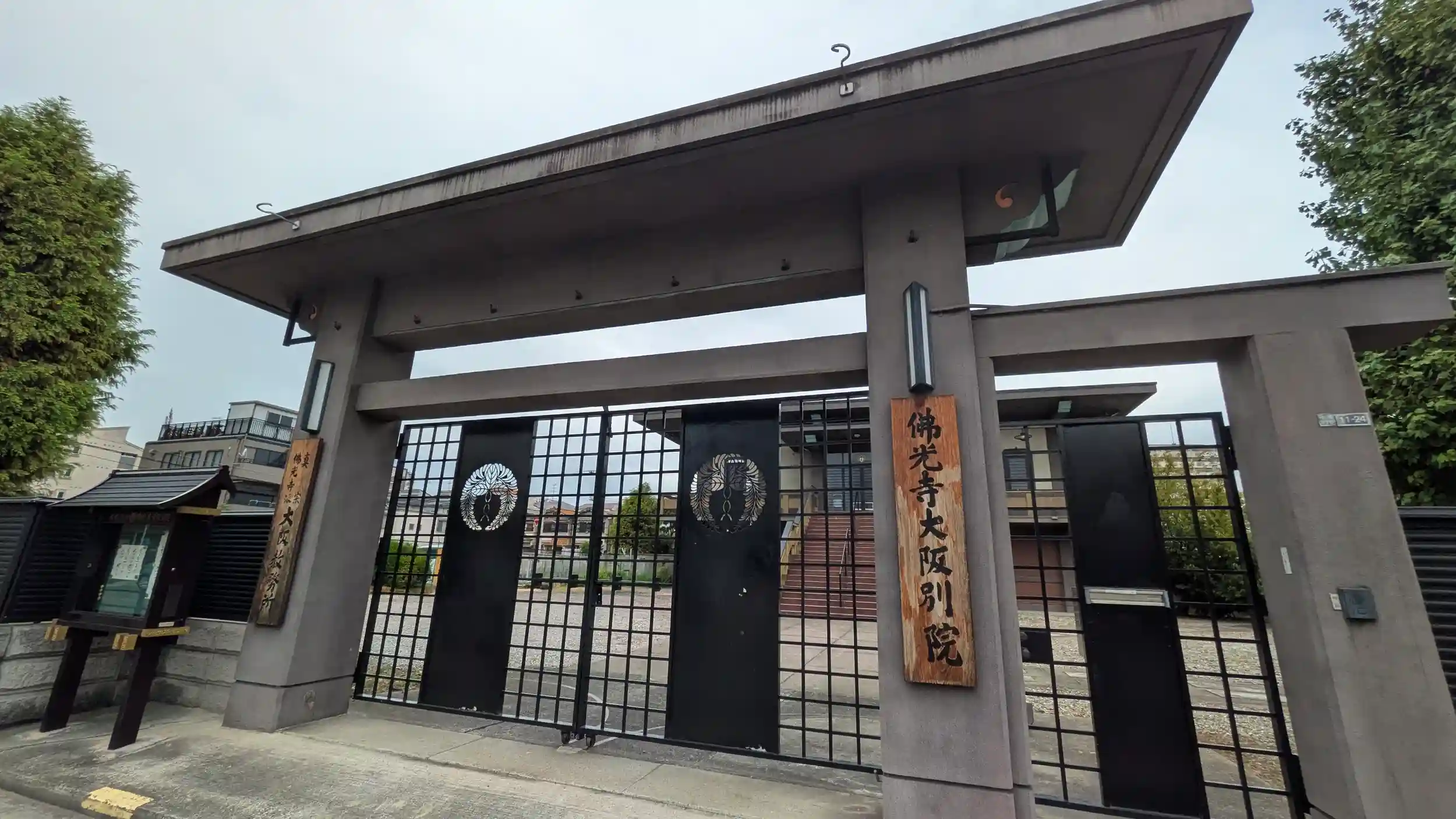 続いてお見掛けした仏光寺の大阪別院。山門が閉ざされていたので門前で合掌。15時過ぎでしたが常に閉まっているんでしょうか・・・?