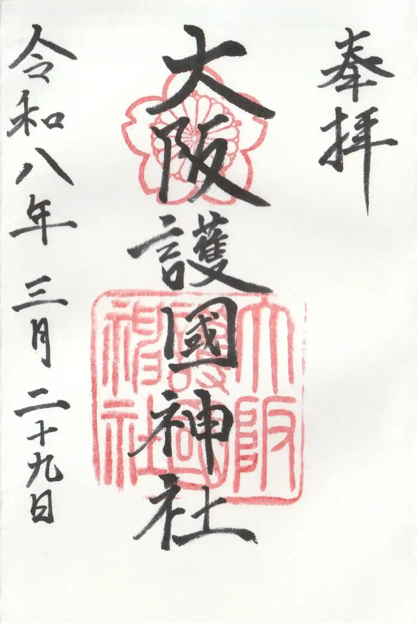昭和二十七年のサンフランシスコ講和条約締結後、大阪護國神社に復称した。