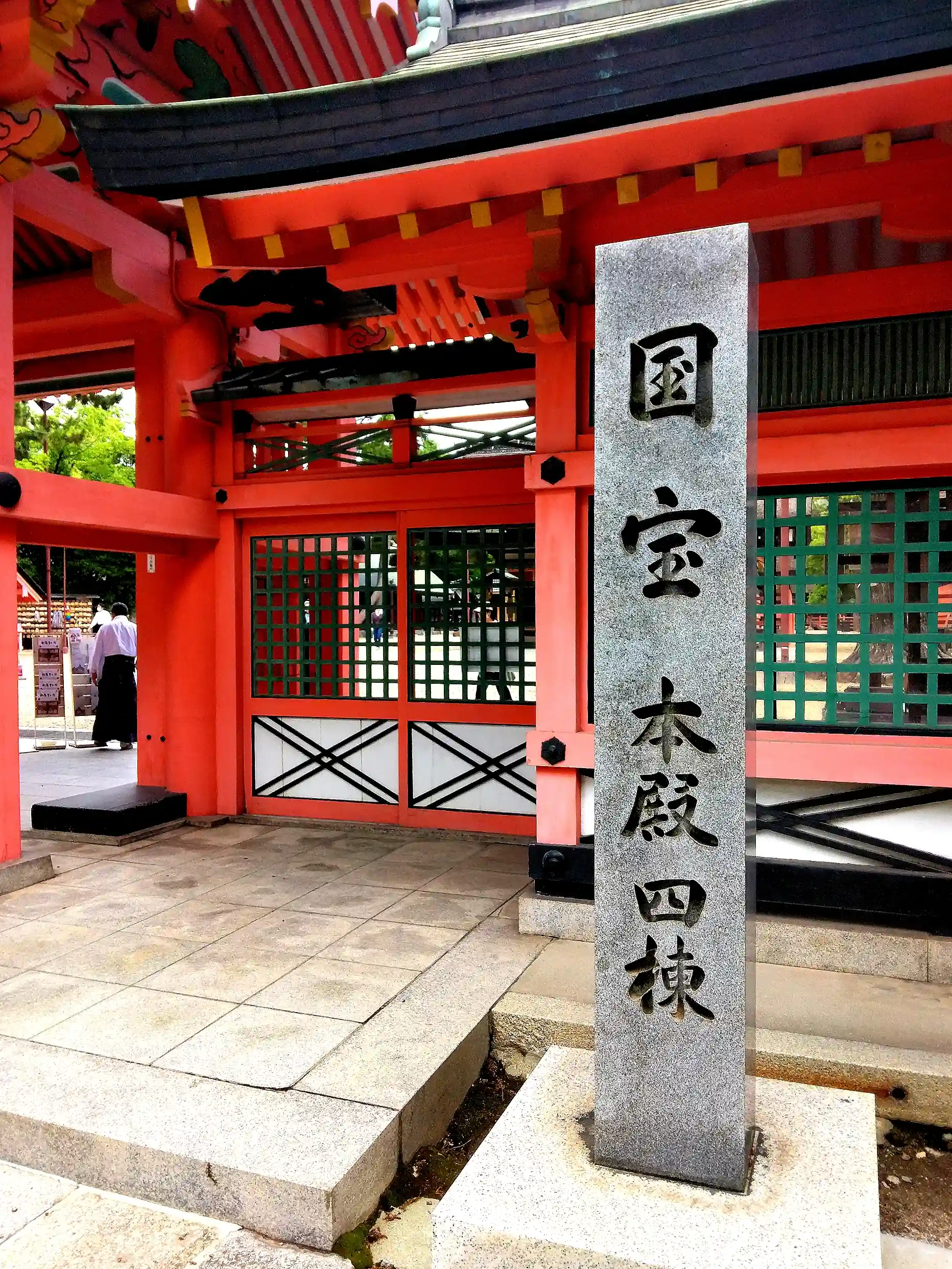 後、皇后をも併せお祀り申上げ、住𠮷四社大明神と崇められ、延喜の制では明神大社に列せられ、朝廷奉幣の二十二社の一つ、由緒の深い摂津國一の宮として聞え高く、昭和二十一年まで官幣大社でありまして、全国二千余に及ぶ住𠮷神社の総本宮です。