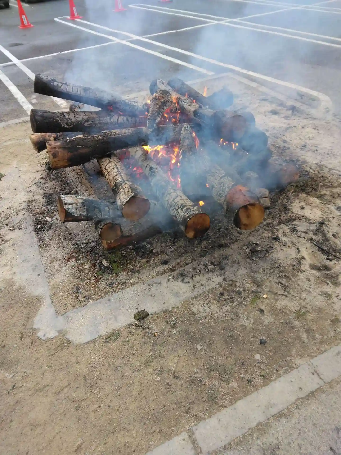 駐車場の隅で護摩祈祷をされており、御守りなどを煙にかざしてました。