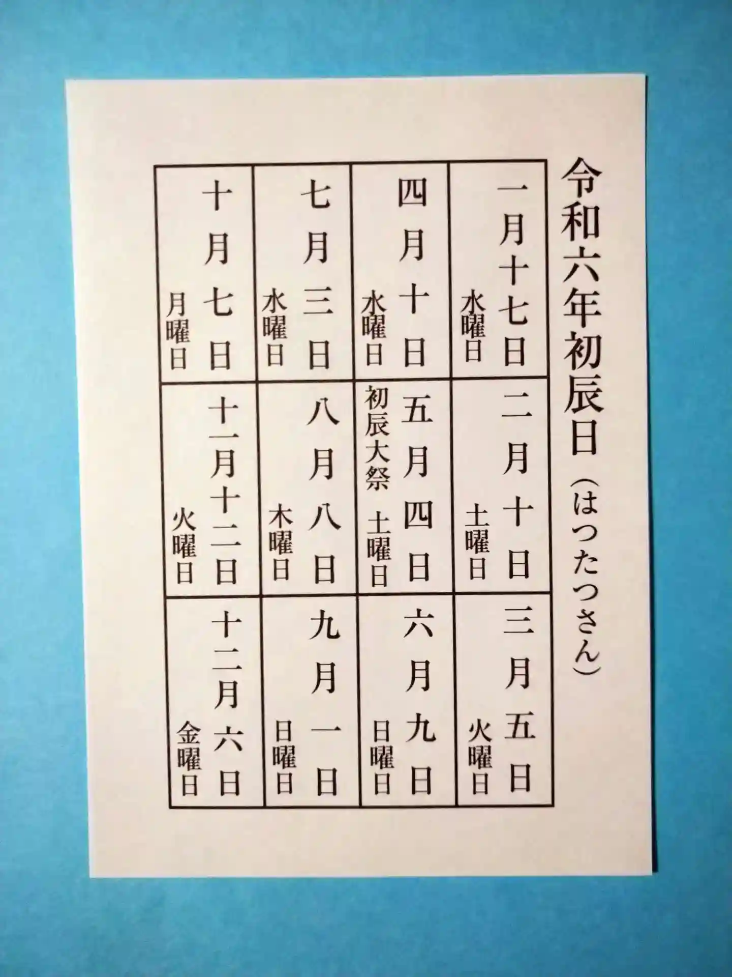 毎月初めの辰の日。