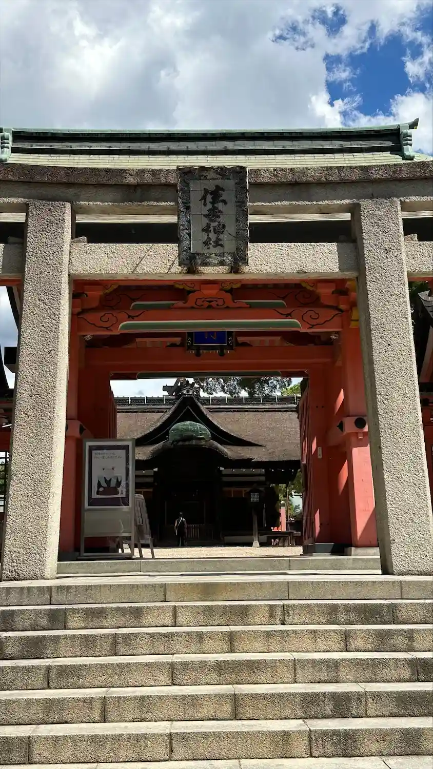 快晴で猛暑日💦住吉公園からの長い参道を通ってご参拝させていただきましたが水分補給が必須の暑さでした😆ご本殿のみご参拝を終えつぎを急ぎました☺️