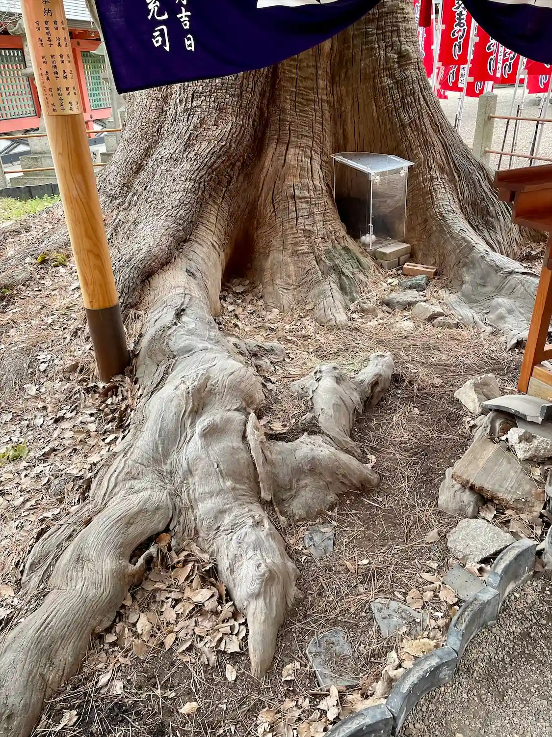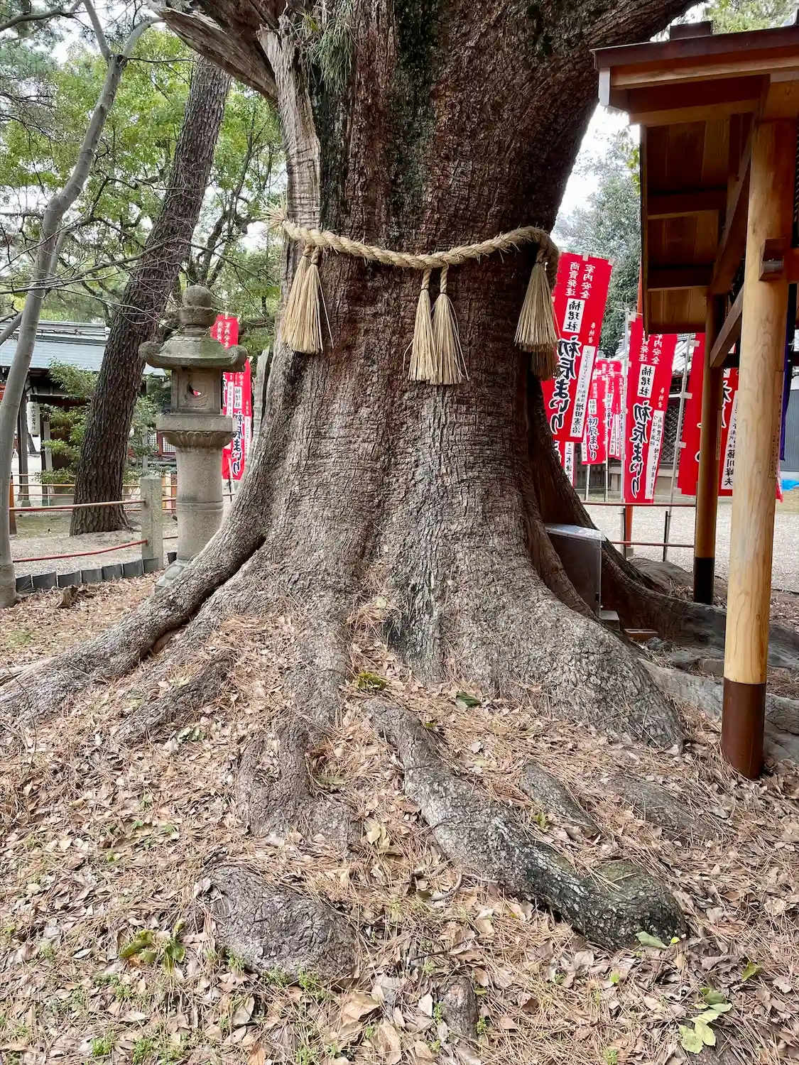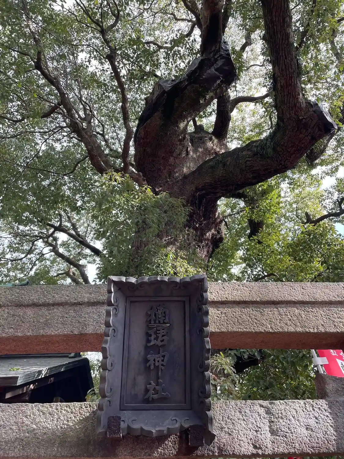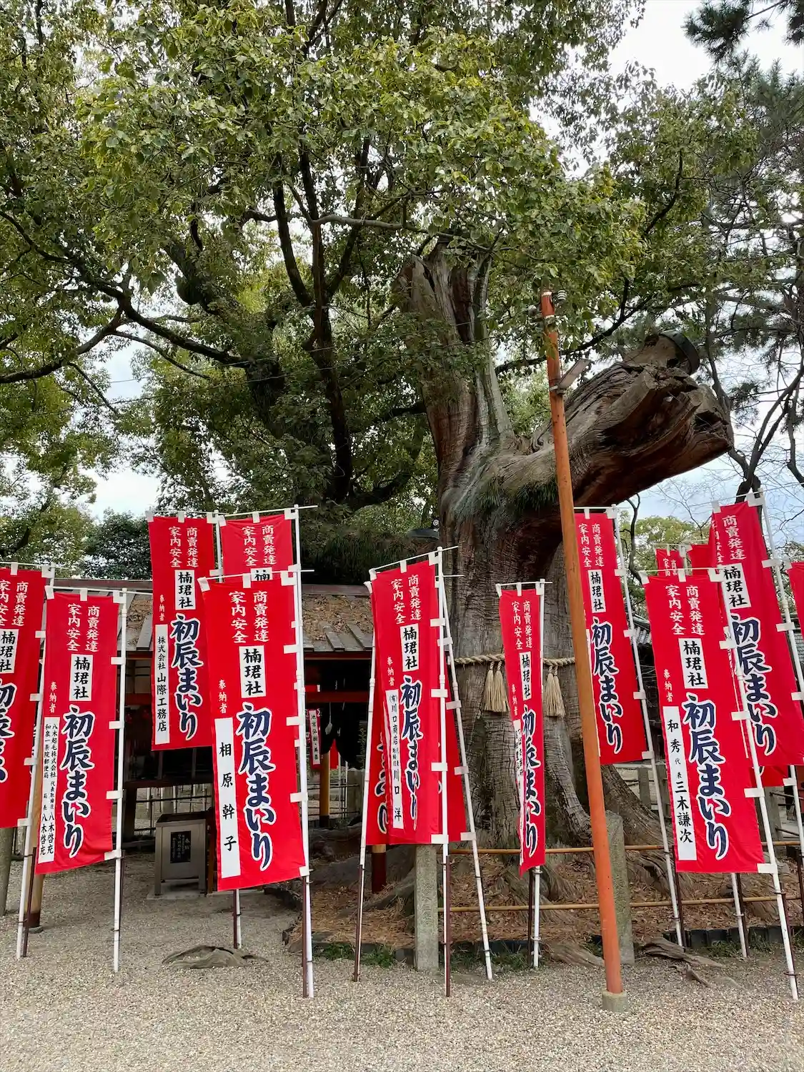 ここには樹齢千年を超える楠があり、江戸時代、人々は楠の神秘的な霊力に祈りを捧げていた。その後、根元に設けられた祠に神様をお祀りするようになったと伝わる。