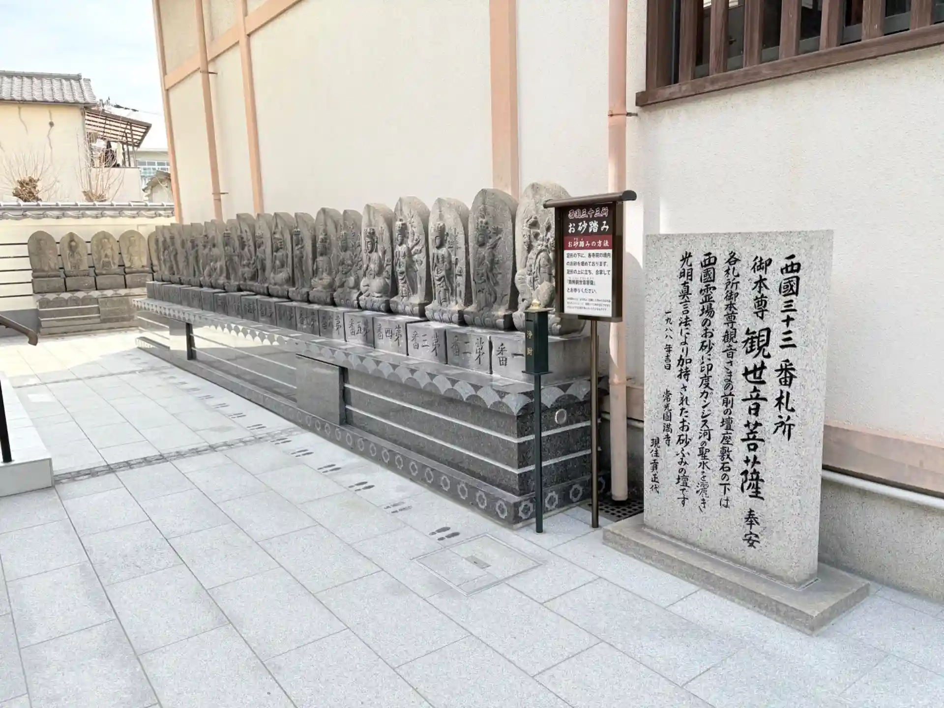 これ以降出てきますが、住職が不在のお寺や、老朽化して朽ち果てそうなそうなお寺がある中で、小ぎれいにサインが置かれていたり、整備されていたりするなど、期待の有力なお寺なのかと思います。摂津国88カ所兼33箇所です。