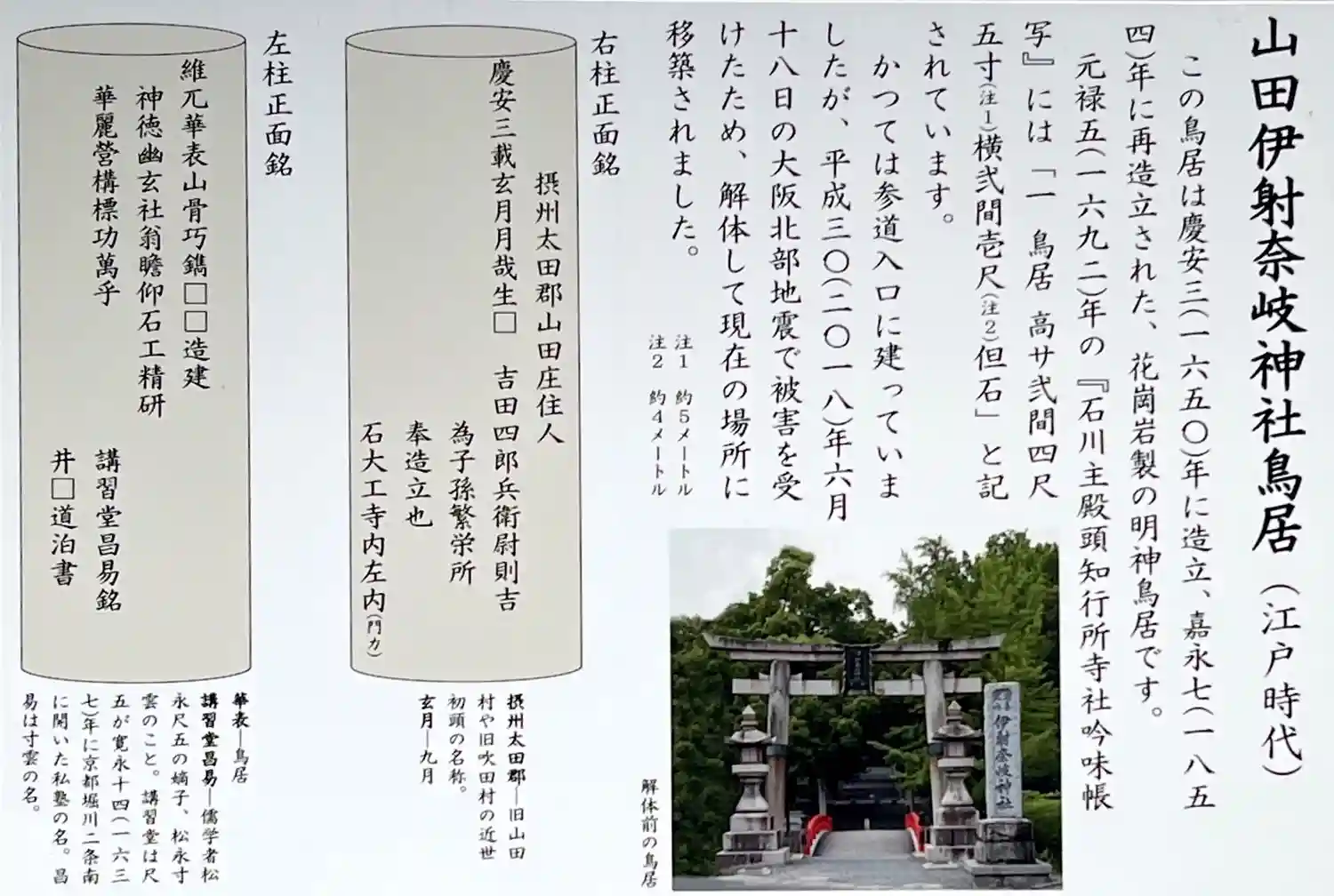 大阪北部地震で倒壊した鳥居上部。???ここまで書いて以前投稿した事思い出しました???まあ、いいか。