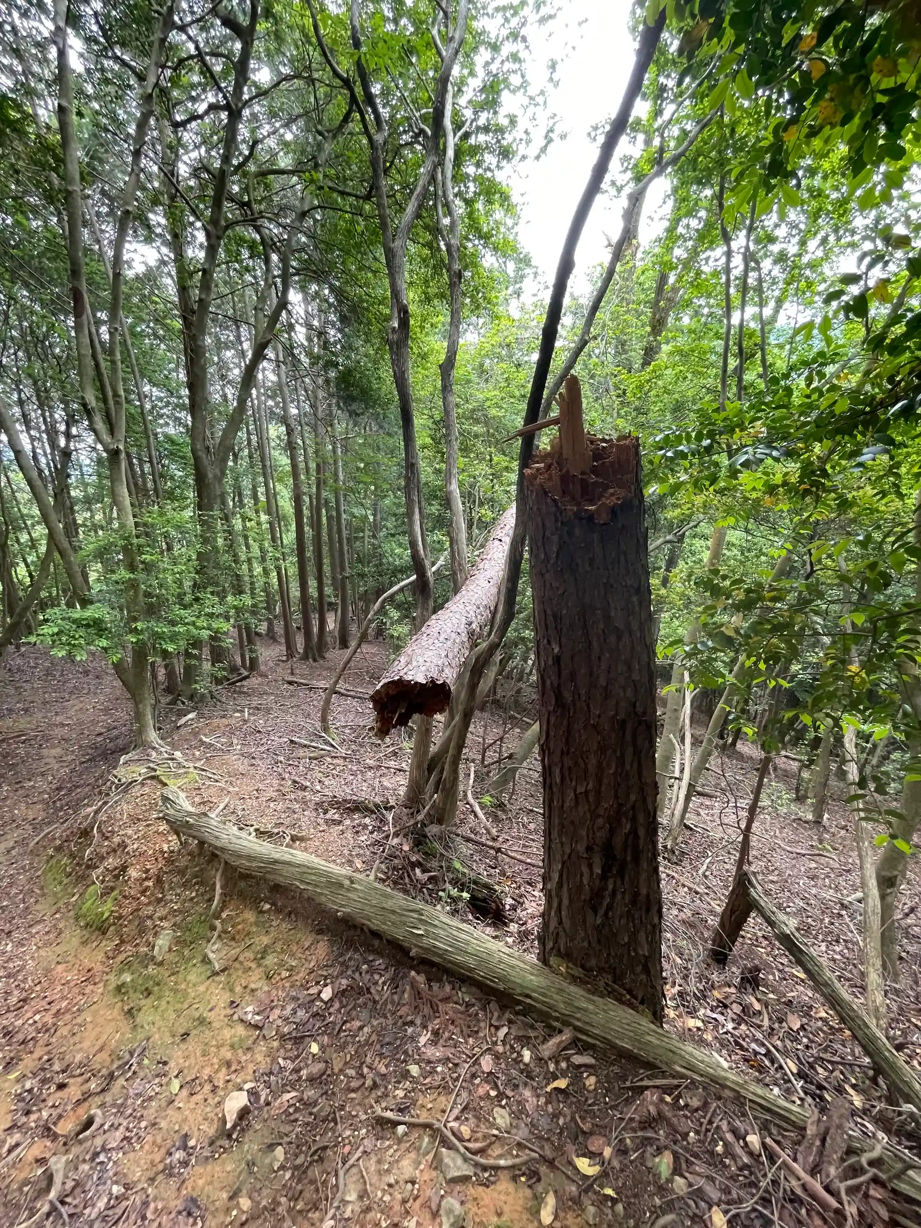 第44番札所まで来ると山頂です。修行大師像がいらっしゃいます。あとは下り。道の途中で折れた木🌲や、崩れ落ちそうな箇所がありましたが、それが修行なのですね。😅