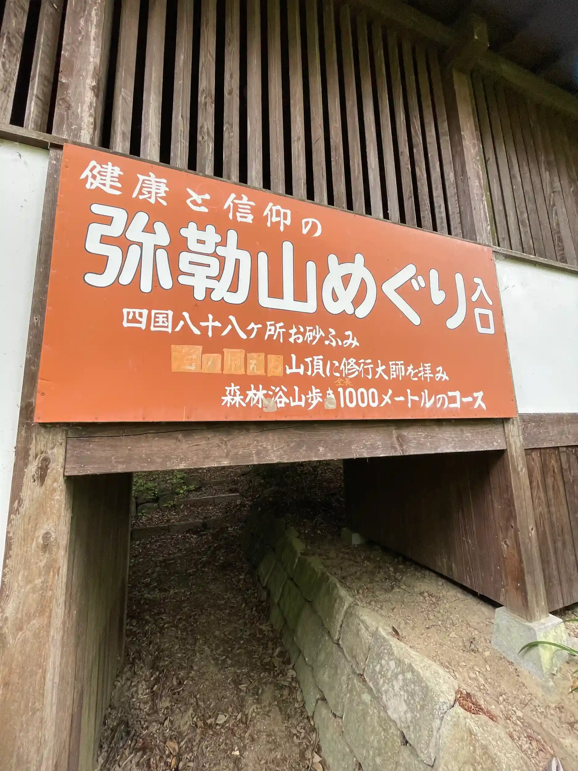 運動不足解消のため,歩く🚶♀️お寺を探していて、こちらは弥勒山めぐりという、四国八十八ヶ所の実際のお砂を祀るお砂踏みの山を巡る回峯行のコースがあり,一周1キロ40分の山登り。山頂の修行大師像目指して頑張りました。😆