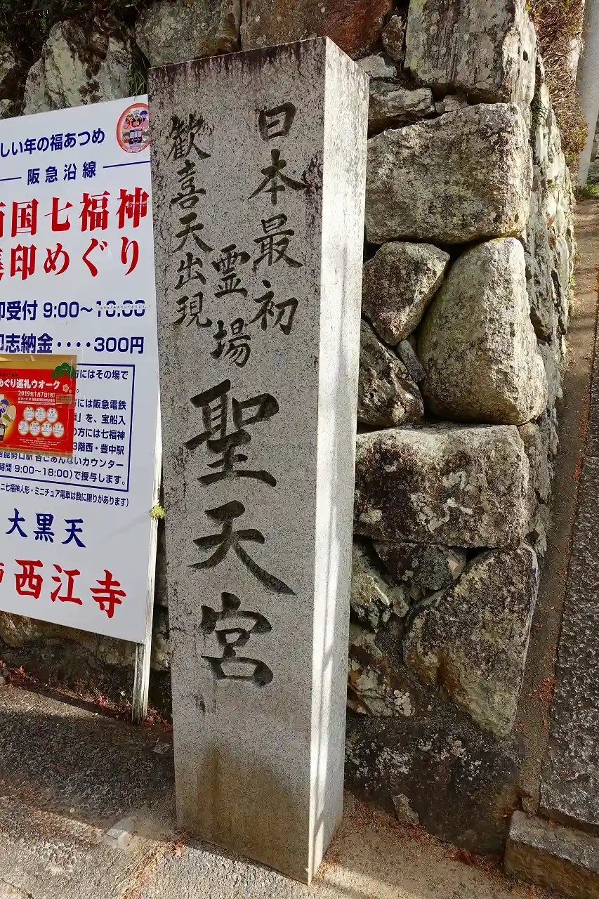 聖天宮石標。日本最初歓喜天出現とある。