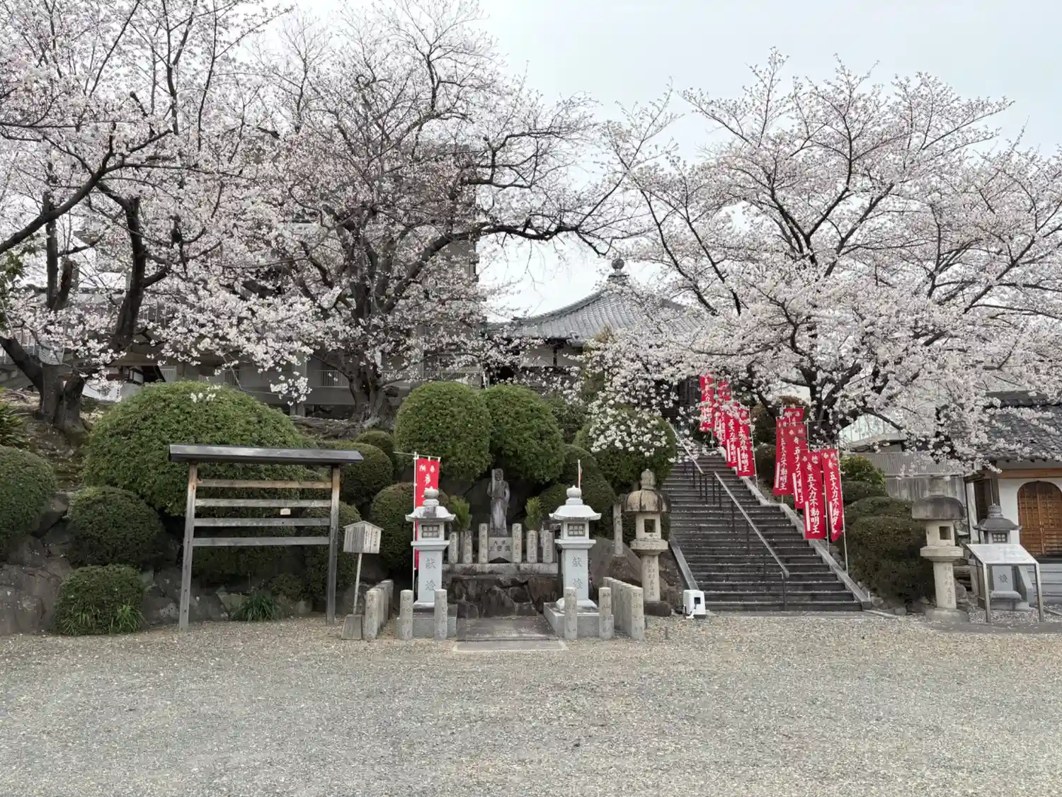 千里中央からバスで20分。住宅地の小高い丘に建つ真言宗寺院。