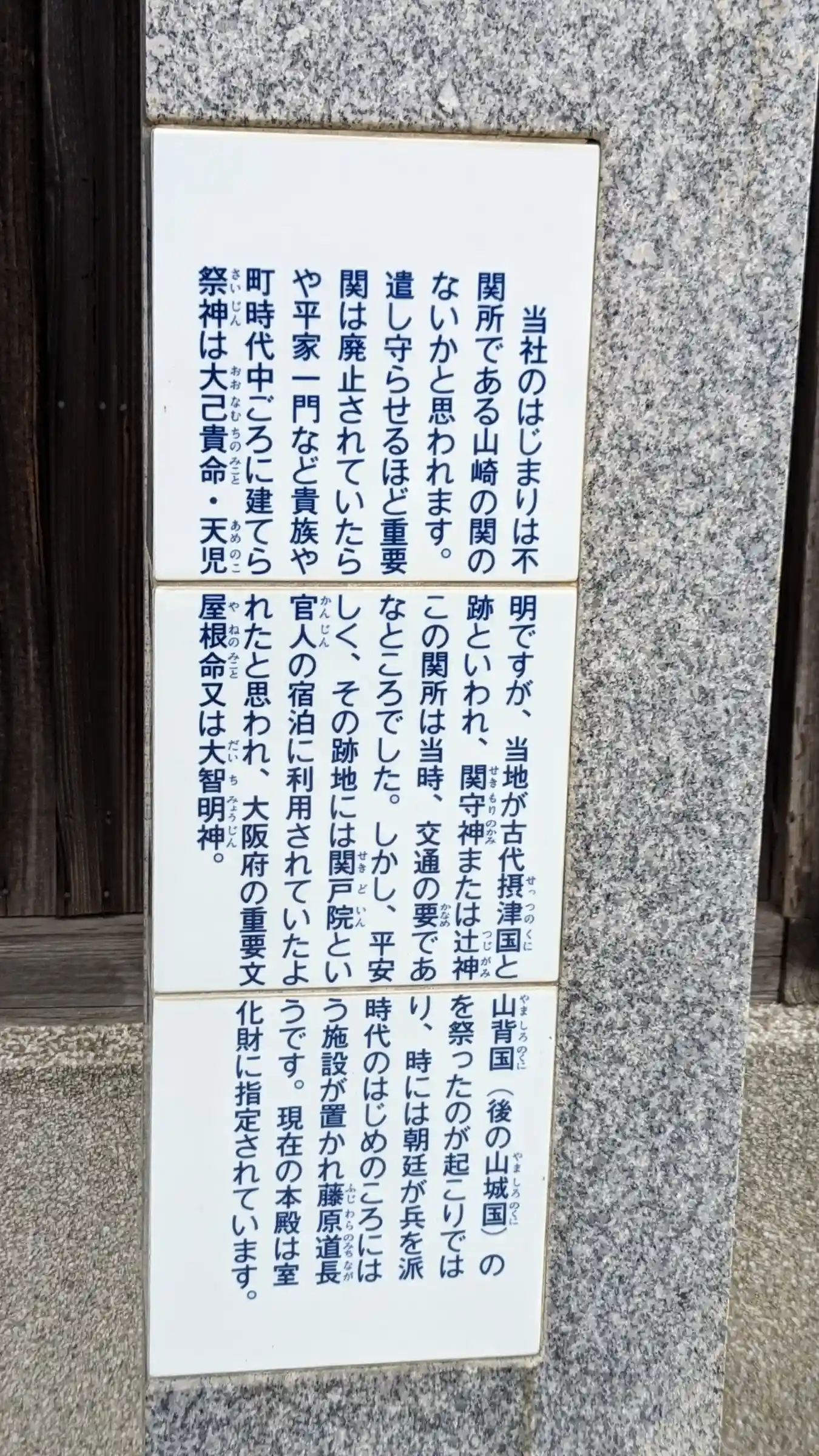 大阪と京都の府境に鎮座されています。西国街道沿いにあり、西国街道は車のすれ違いも容易でない場所も多…