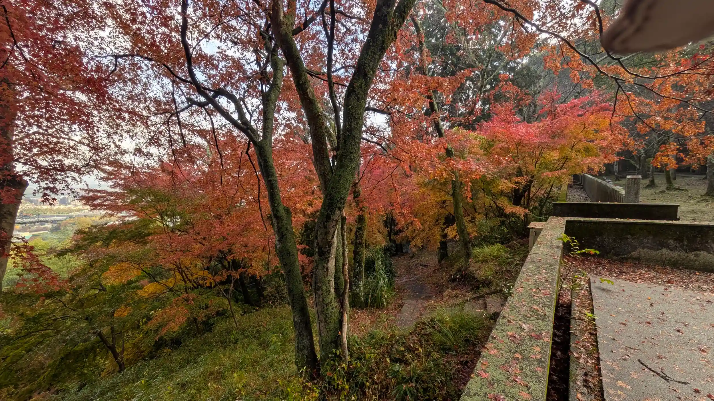 どうしようかなぁと思いながら若山神社まで2キロぐらいだったので行ってみるかと移動。まあ参道近くからまたもや登り😱進んで行くと・・・来て正解😍こちらも見事な紅葉。しかも人いな~い🤗しっかり堪能できました。摂末社も多く、稲荷さんが特に多いみたい。また本殿前からの眺望では淀川三川(木津川・宇治川・桂川)の合流地点が見れるらしいのですが・・・マンションで見えん🤣社務所不在でしたが前に携帯番号の張り紙があり、電話すると来てくださいました。なんせ5万坪ぐらいの土地を二人ぐらいで見周らないといけないそうで😅三連休はかなり賑わったそうですが休み明けなので静か。それでも例年よりは人で少なく、熊出没の風評被害の影響があるそうです。熊の問い合わせもあるんやろうなぁ。御朱印は書置きのみですがとのことでありがたく拝受し後にしました🤗