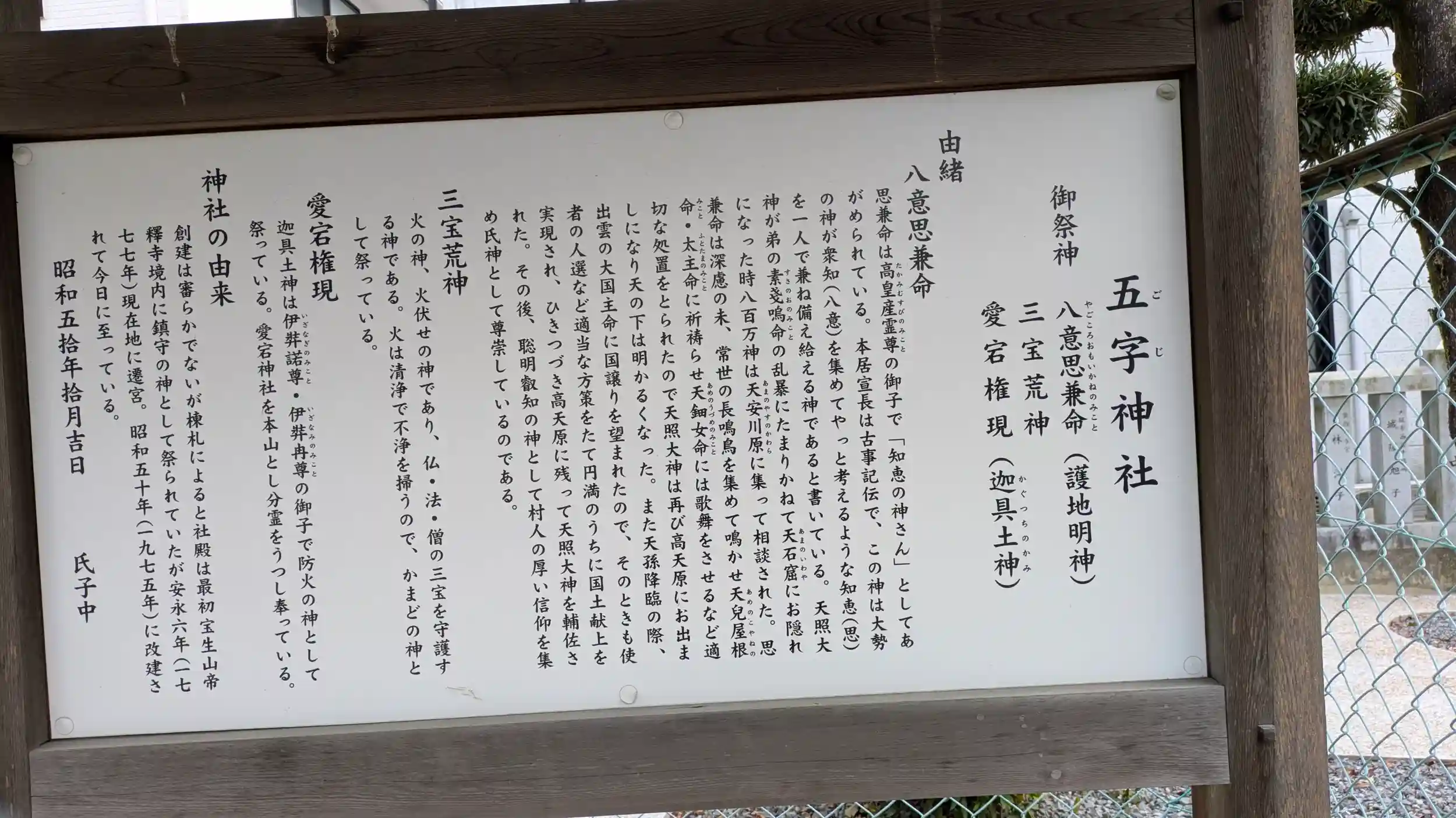 帝釈寺へ向かう途中でお見かけしたので参拝。先の素戔嗚尊神社の由緒でお見かけした合祀されていたうちの一社。このあたりにはもう一社、粟生間谷にも五字神社があるのですがそちらは「ごあざじんじゃ」そしてこちらは「五字神社」と読みがことなります。御祭神はどちらも八意思兼命。思兼命が主祭神って京都でもあまり記憶無いけどなかなかレア?「ごあざ」のほうは行きそびれたのでまた次回。