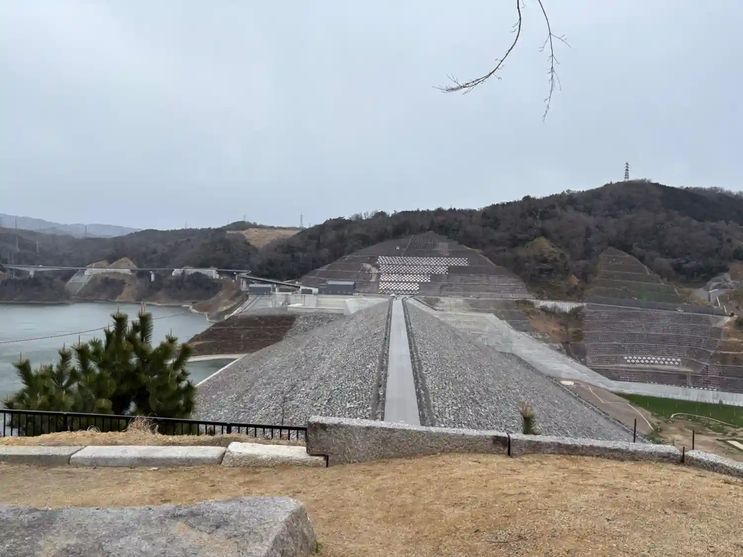 ダムの頂上です。こんなふうになってるのですね。いかにこちらが高い所か分かりますね。