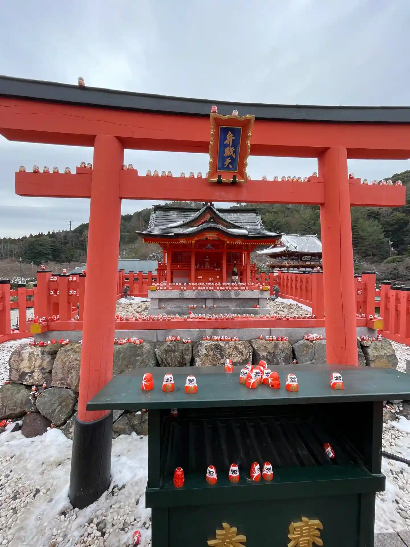 白い雪と赤い勝ちだるまがキレイです