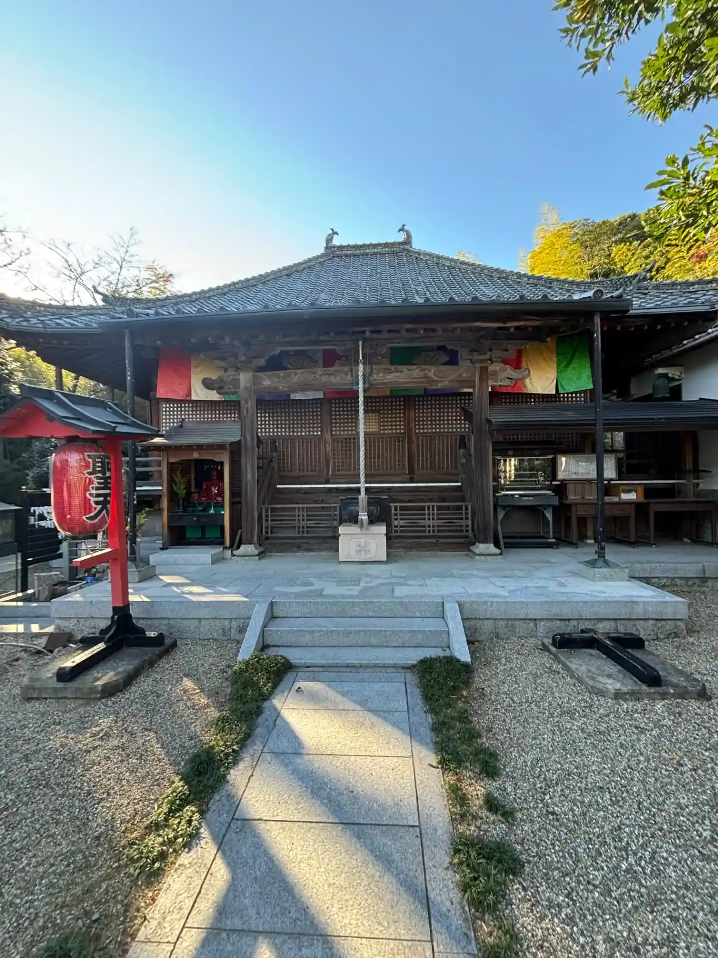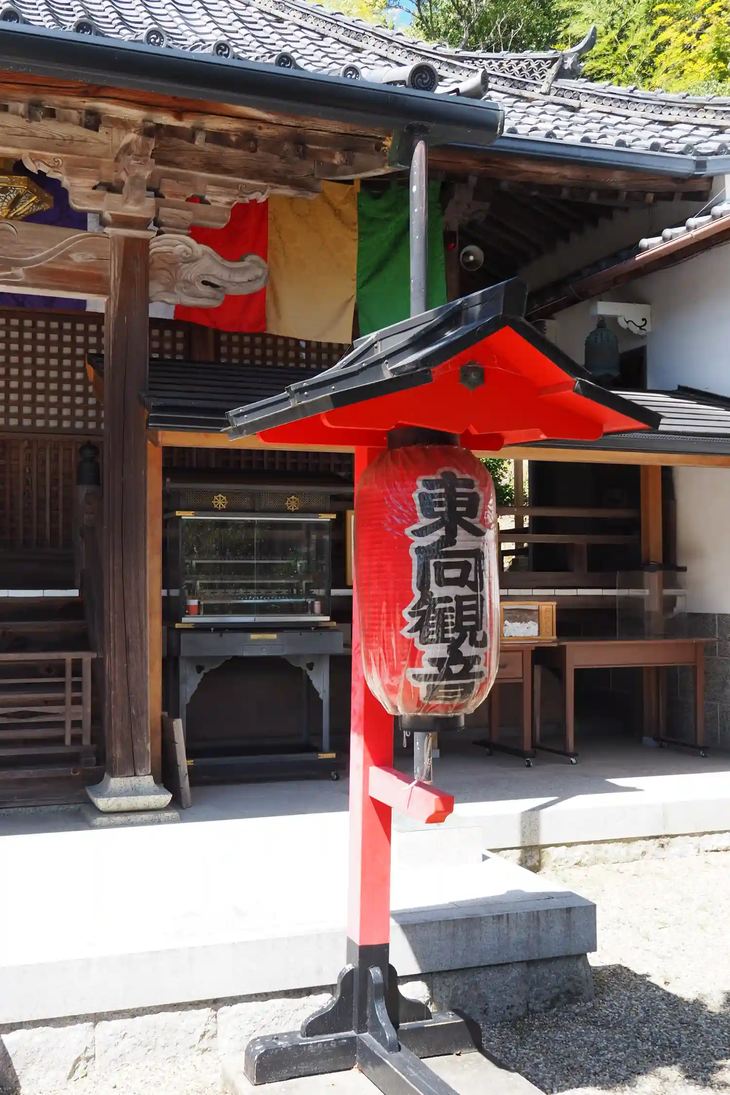 本堂。提灯に東向観音と聖天の文字