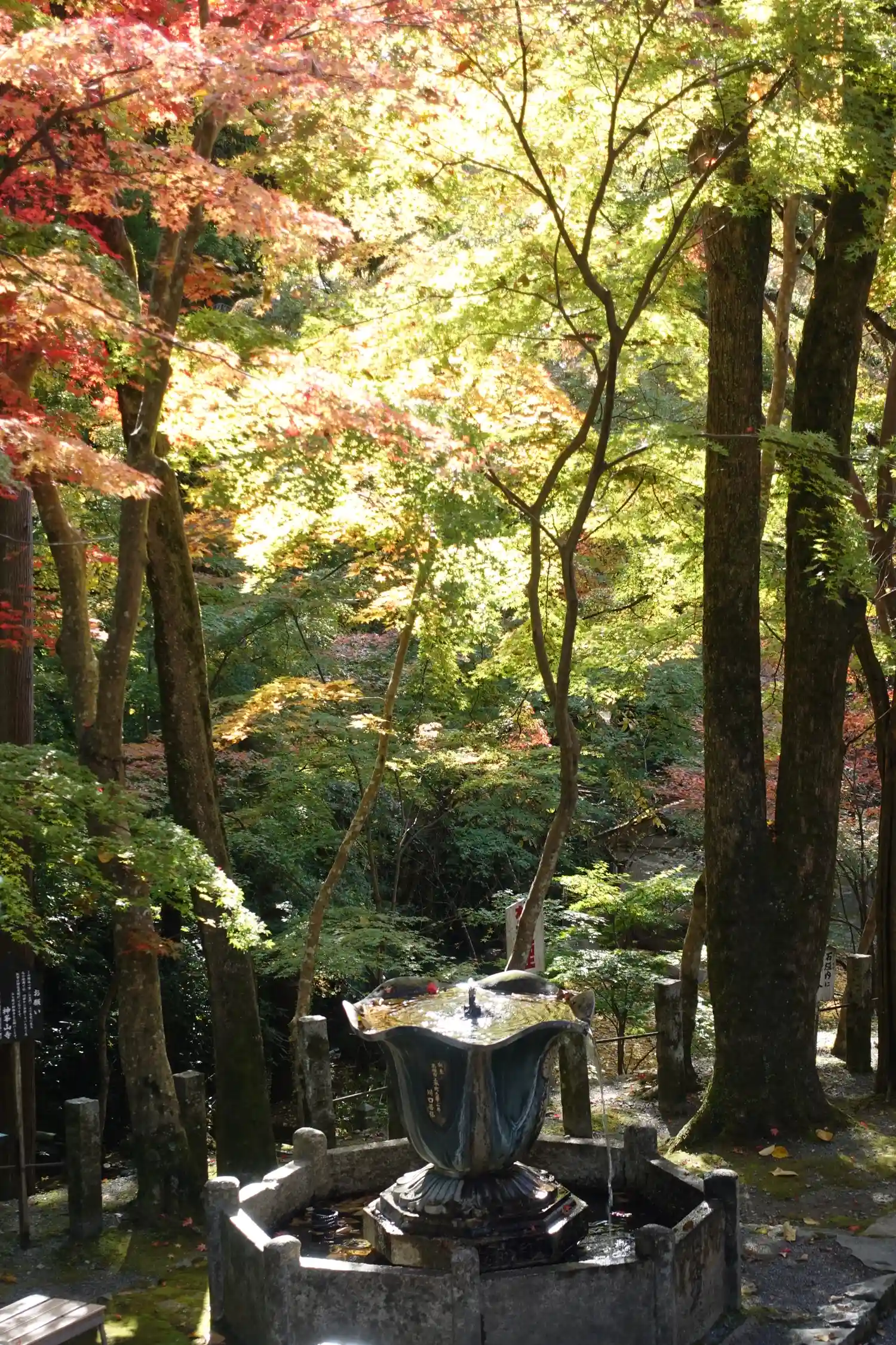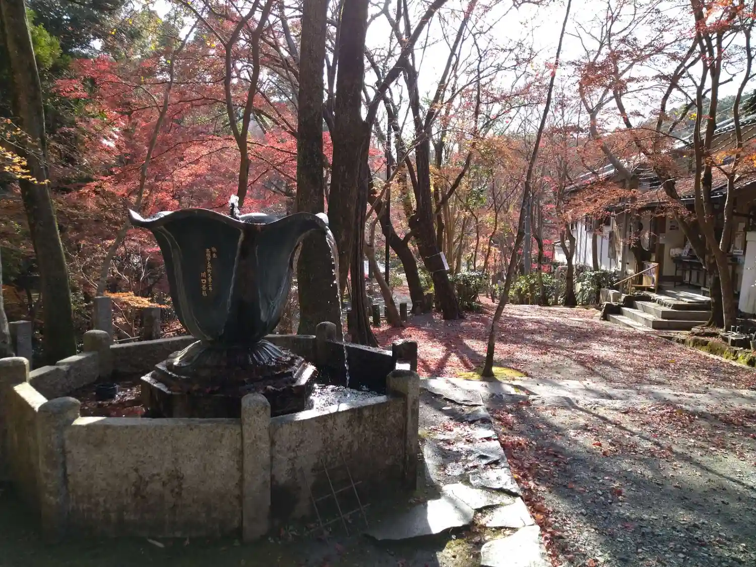 大阪北部の山の中にある景観豊かな寺院。散り際でしたが紅葉も楽しめました。